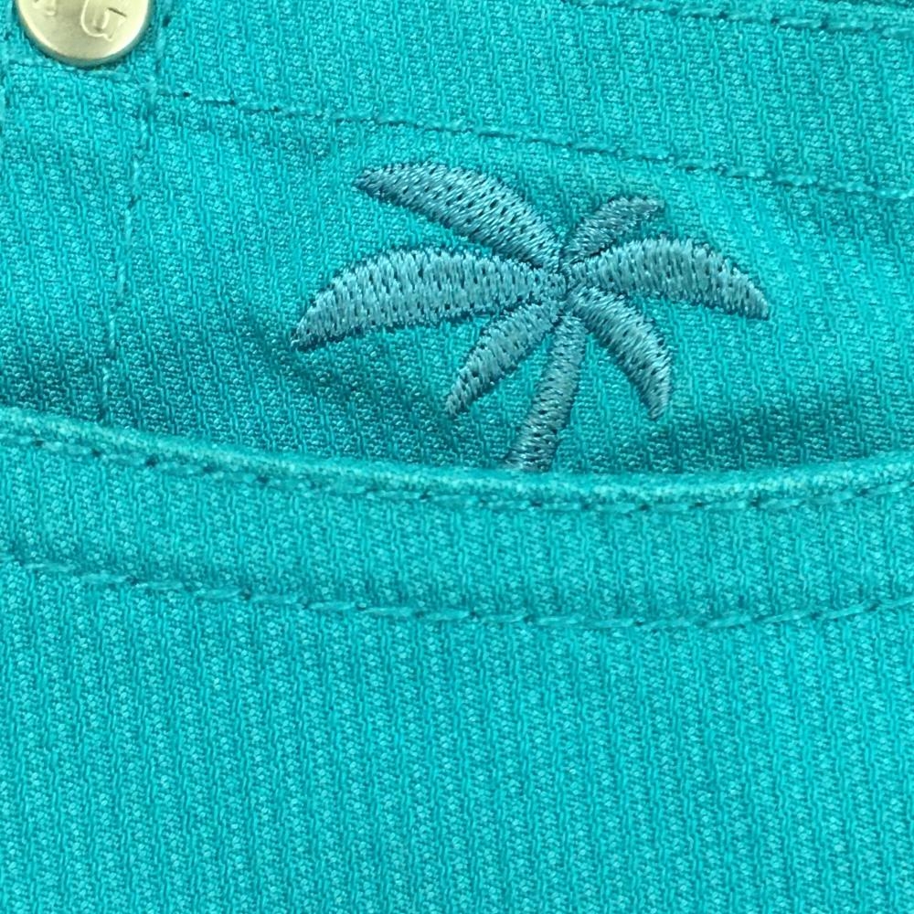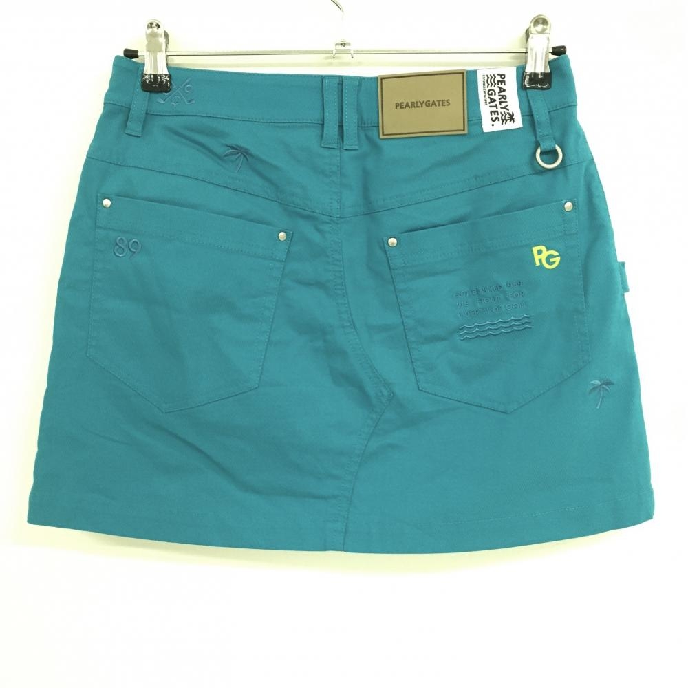 【美品】パーリーゲイツ スカート ブルー ヤシの木刺しゅう ロゴイエロー レディース 1(M) ゴルフウェア 2023年モデル PEARLY GATES