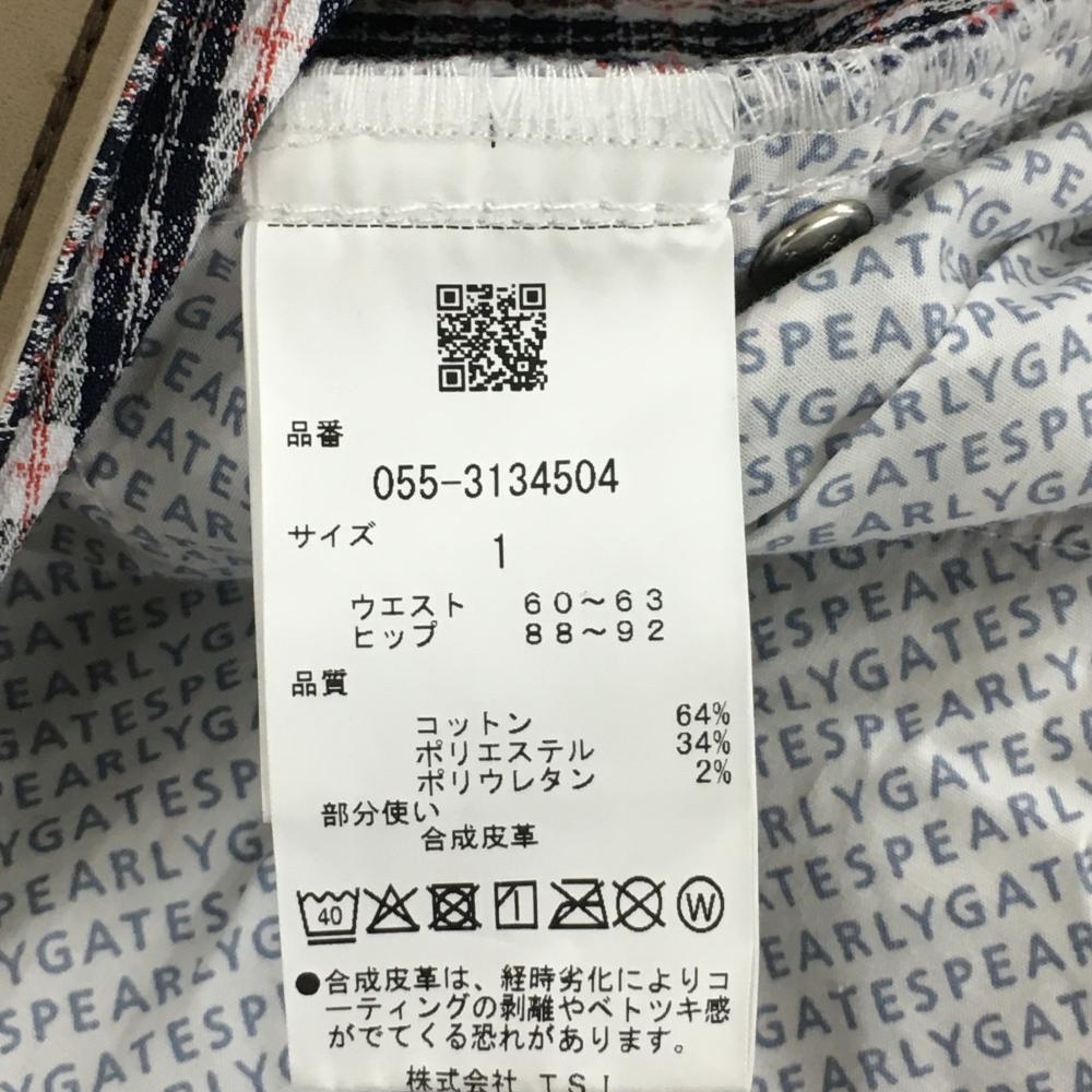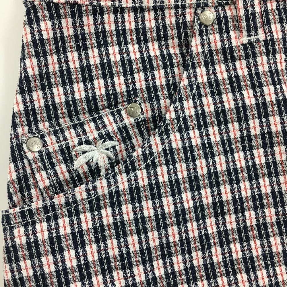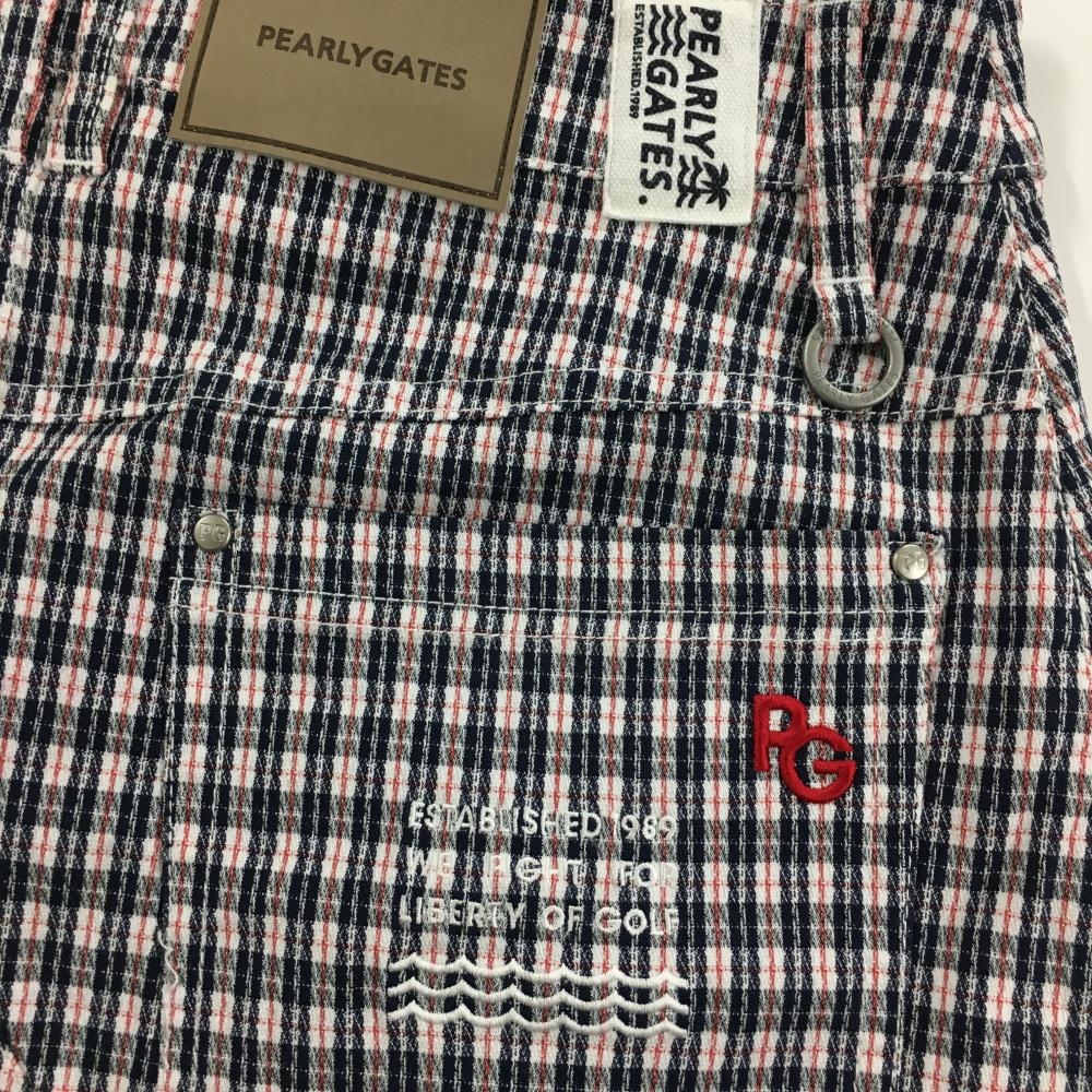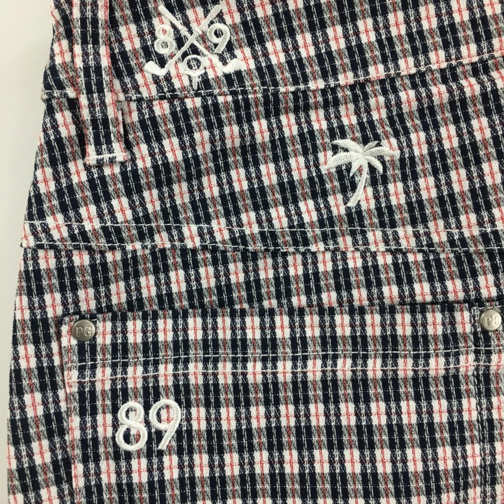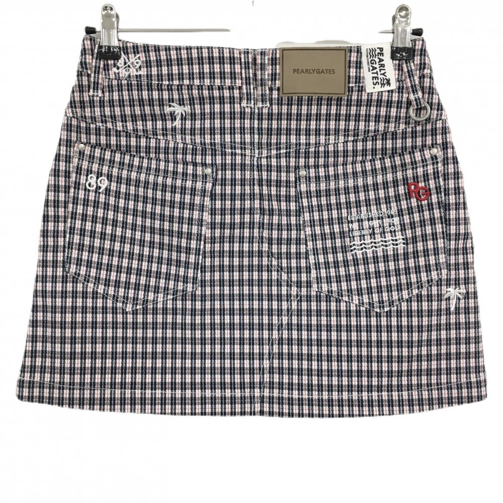 【超美品】パーリーゲイツ スカート 白×黒×レッド チェック ヤシの木刺しゅう レディース 1(M) ゴルフウェア 2023年モデル PEARLY GATES