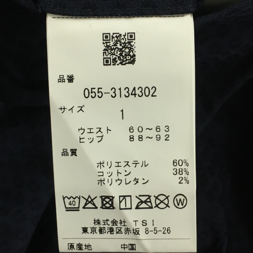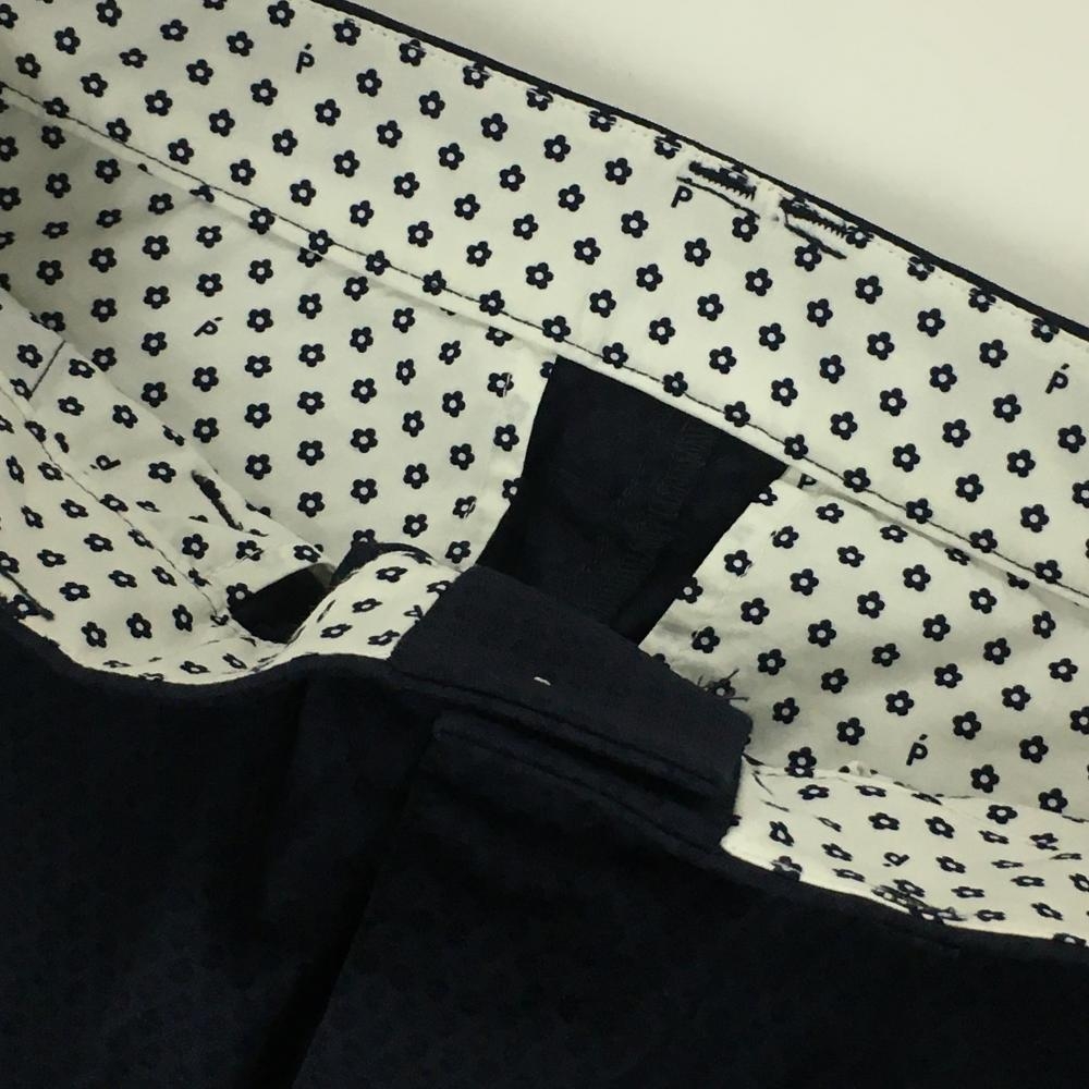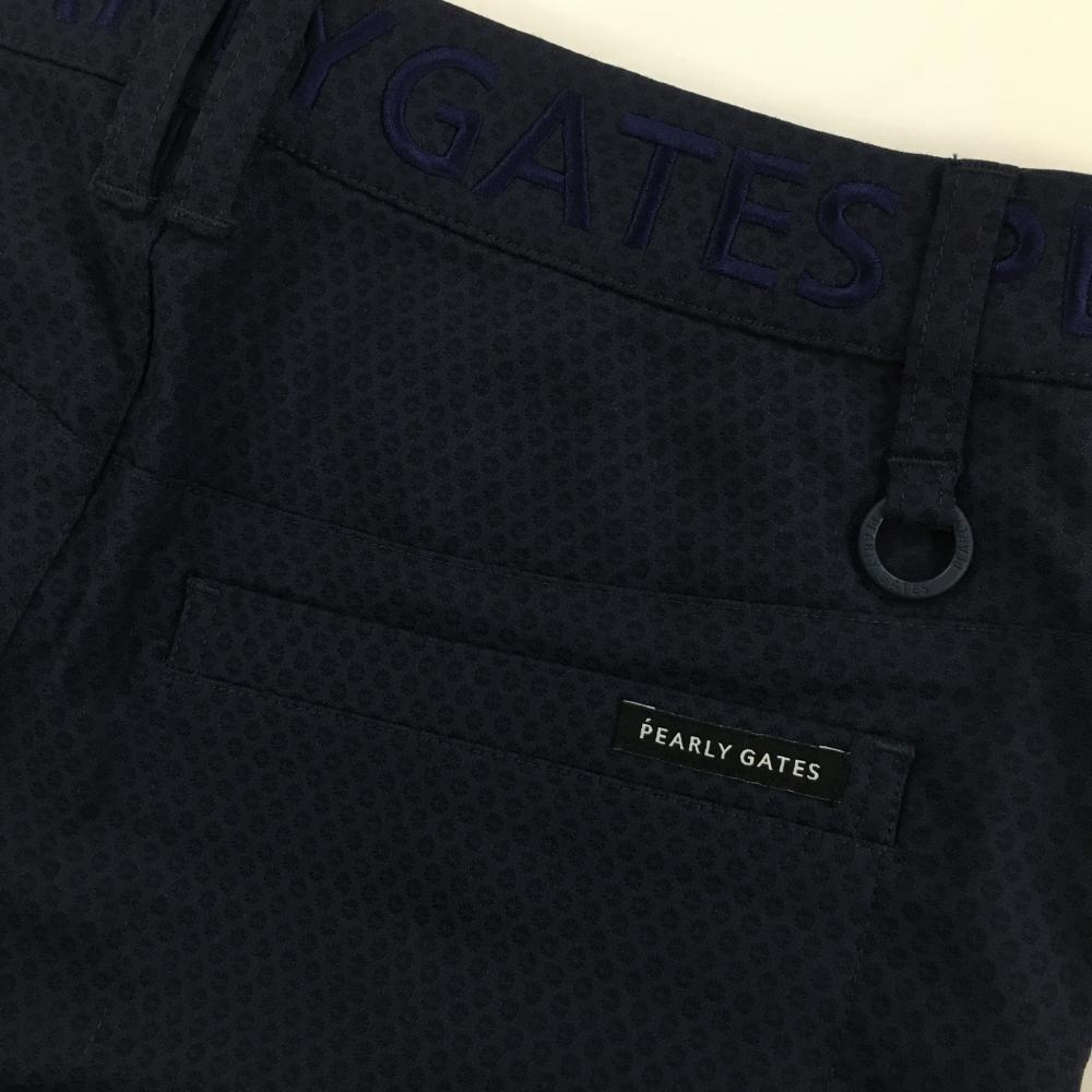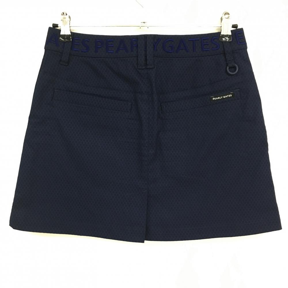 【超美品】パーリーゲイツ スカート ネイビー 織生地 ウエストロゴ 内側花柄 レディース 1(M) ゴルフウェア 2023年モデル PEARLY GATES