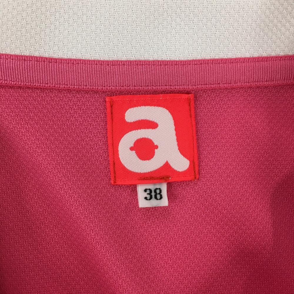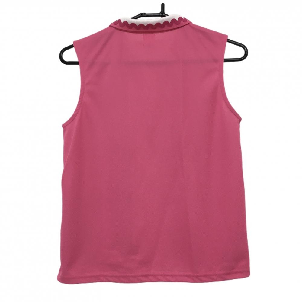 【美品】アルチビオ 襟付きフルジップベスト ピンク×白 裾ドローコード レディース 38(M) ゴルフウェア archivio