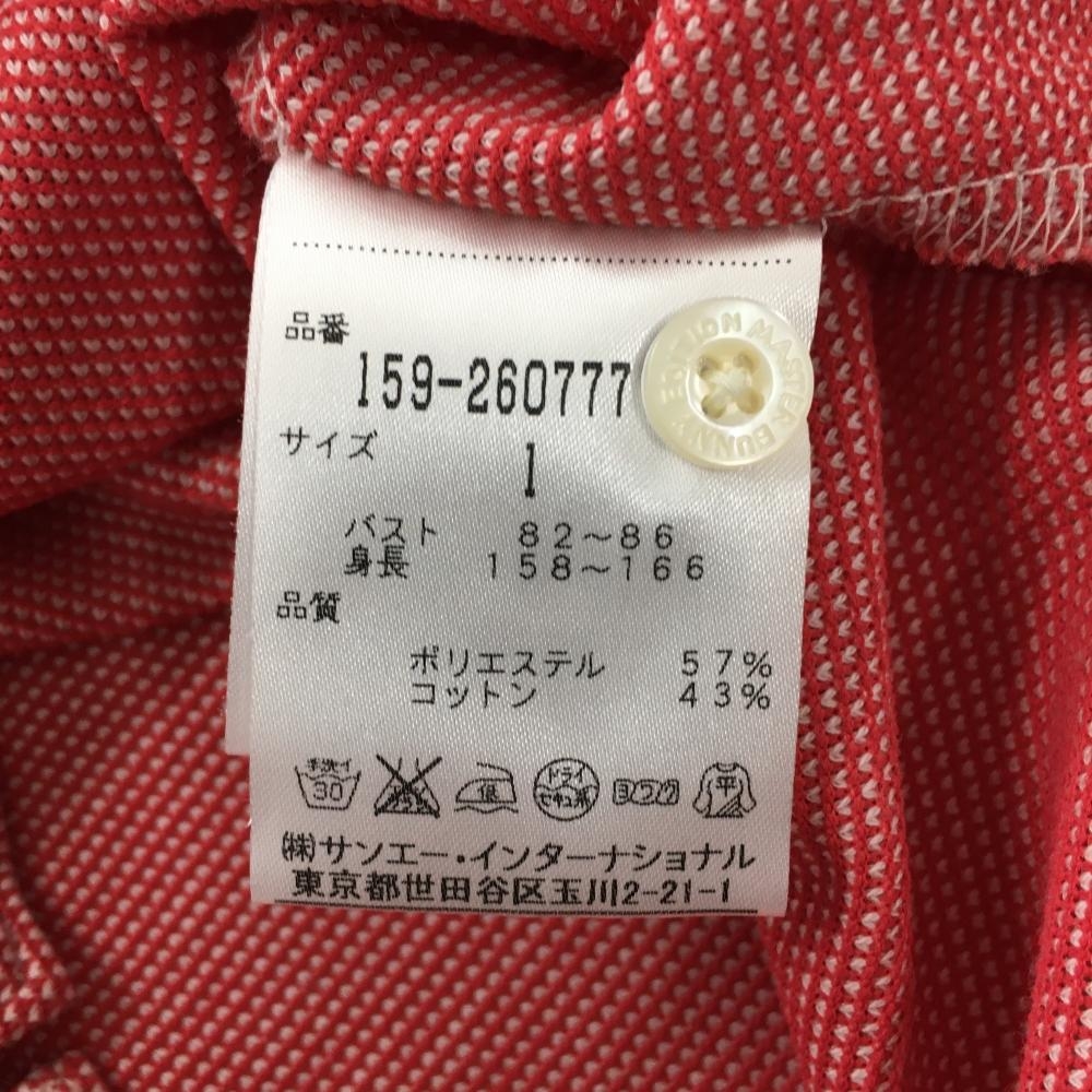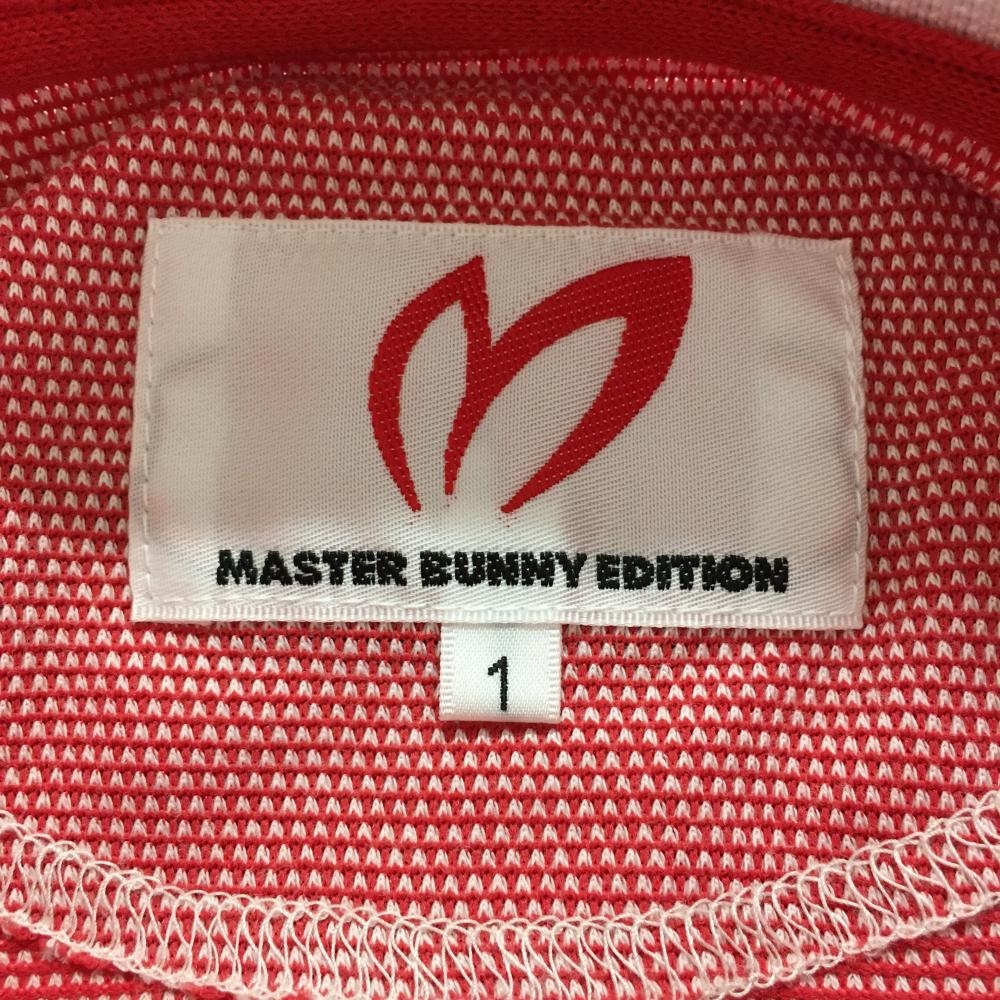 【超美品】マスターバニー 半袖ポロシャツ レッド×白 織生地 王冠刺しゅう レディース 1(M) ゴルフウェア MASTER BUNNY EDITION