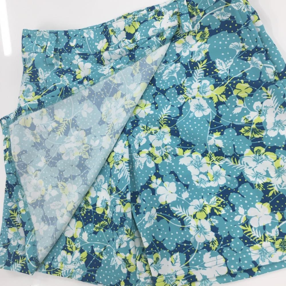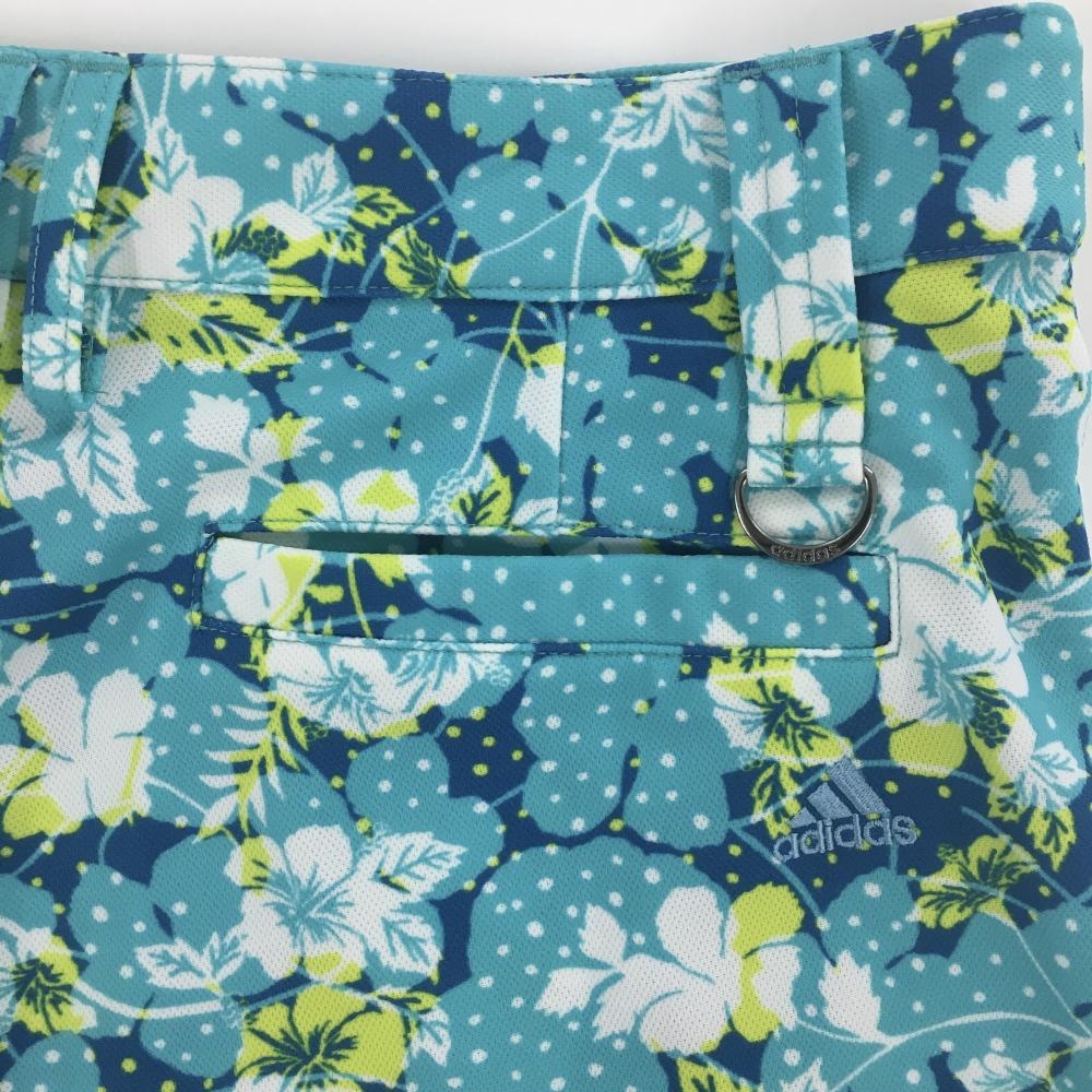 【超美品】アディダス キュロットスカート ライトブルー×白 ハイビスカス柄 ドット レディース M/M(M) ゴルフウェア adidas