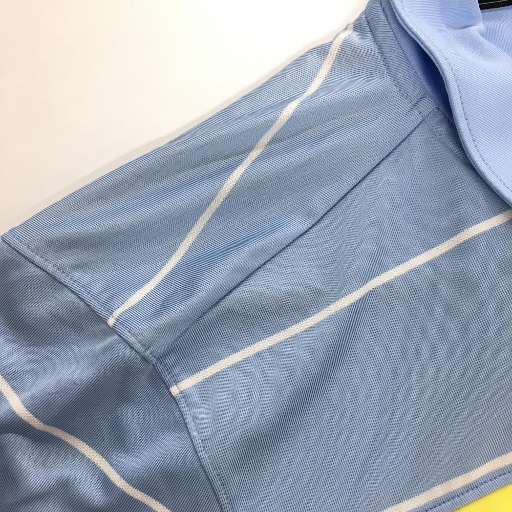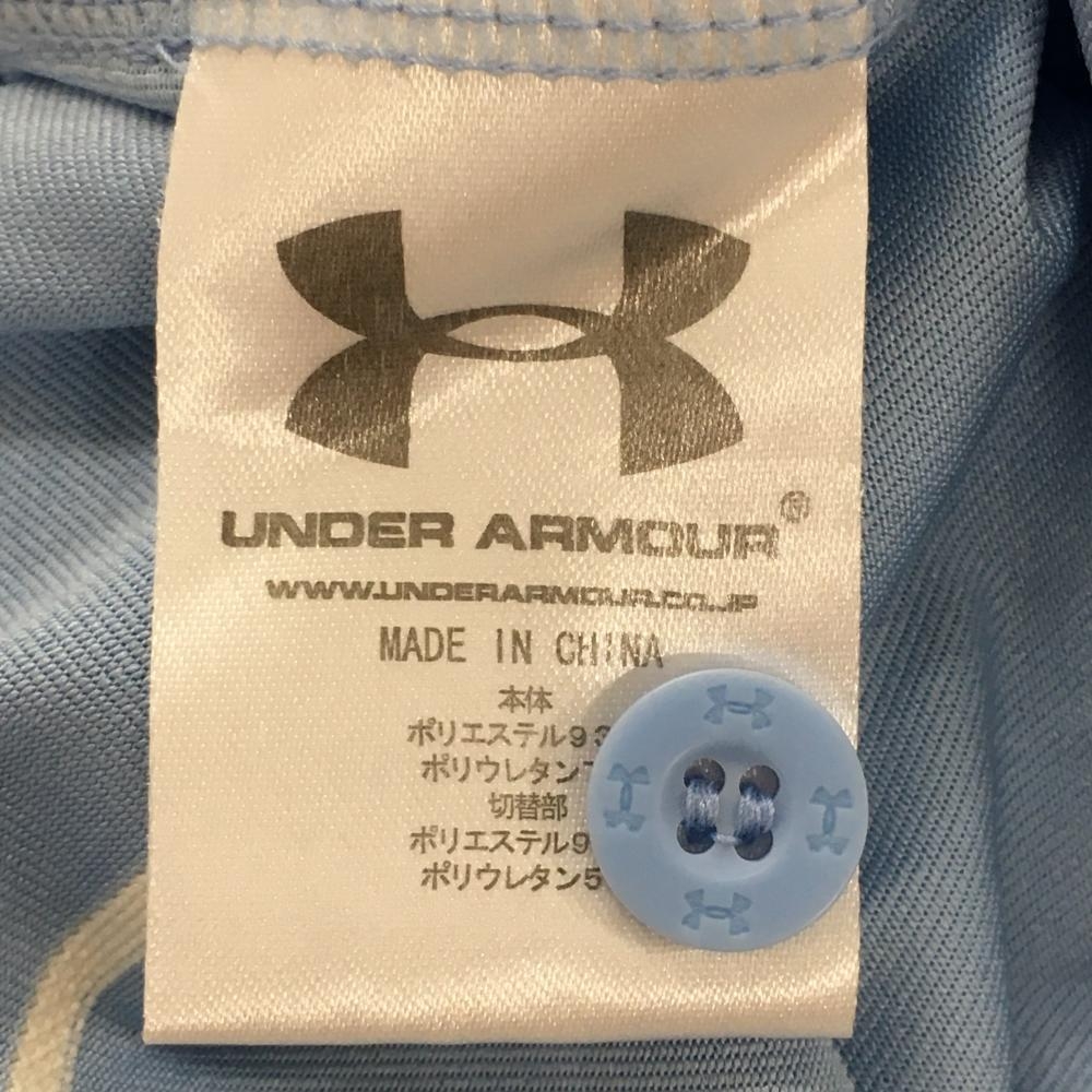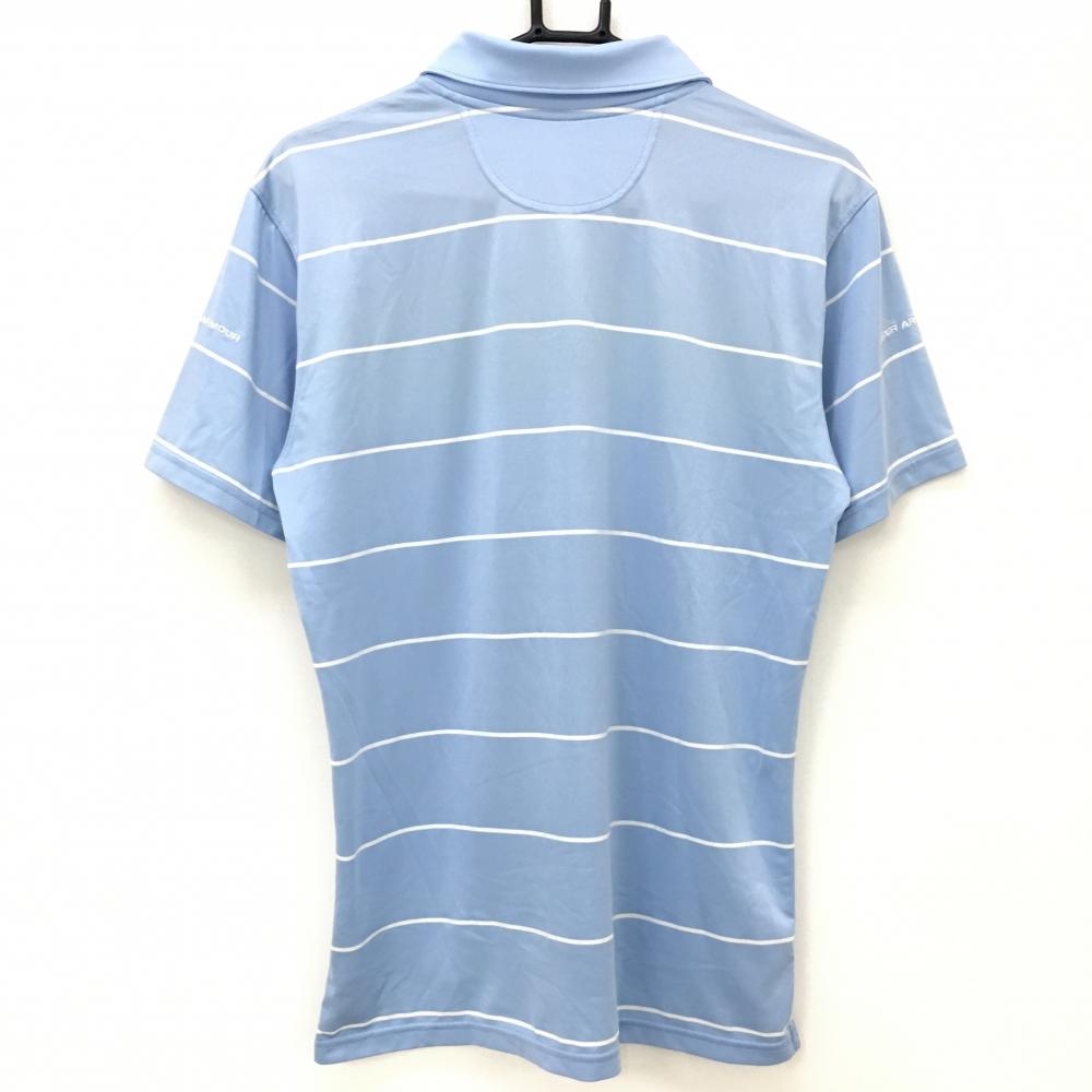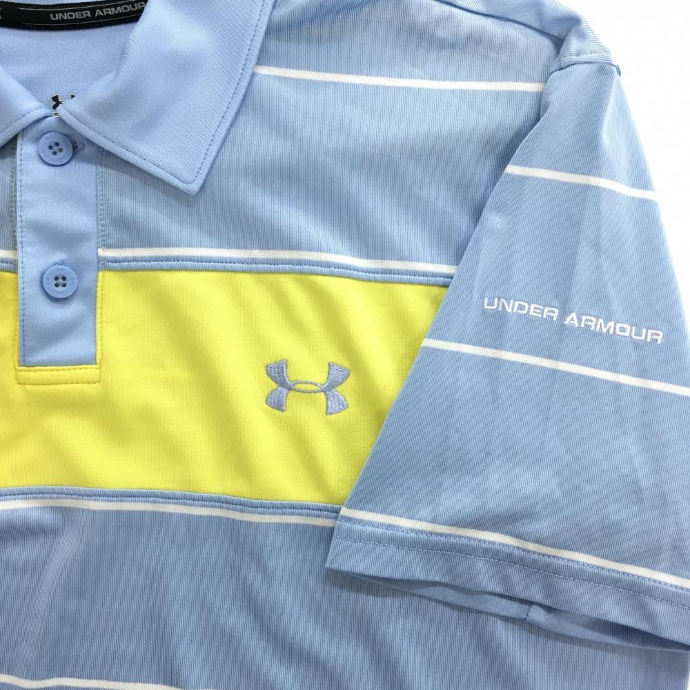 アンダーアーマー 半袖ポロシャツ ライトブルー×イエロー ボーダー 胸刺しゅう メンズ SM ゴルフウェア UNDER ARMOUR
