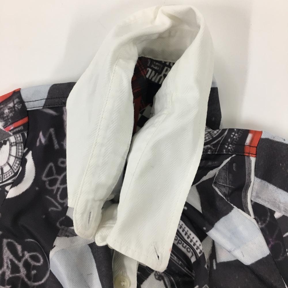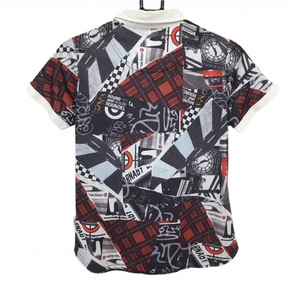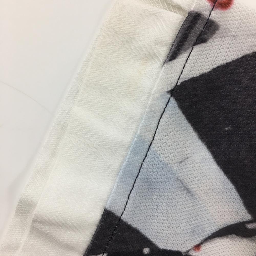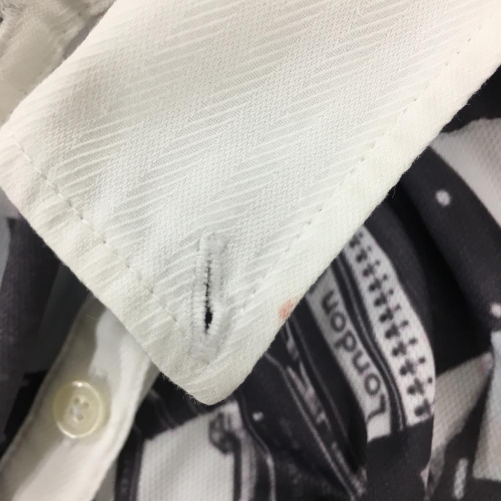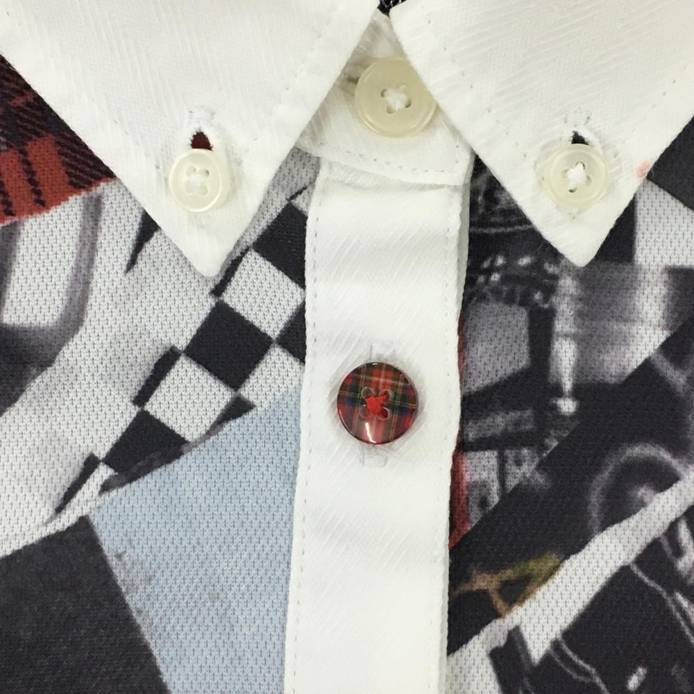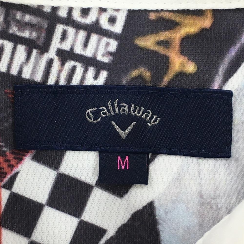 【美品】キャロウェイ 半袖ポロシャツ 白×ダークグレー 写真総柄 ボタンダウン レディース M ゴルフウェア Callaway
