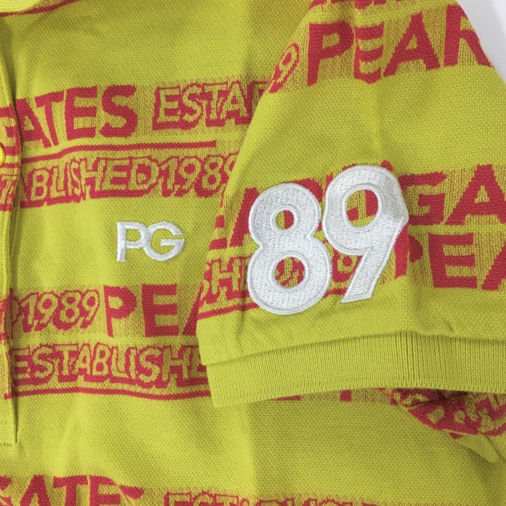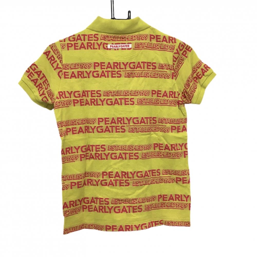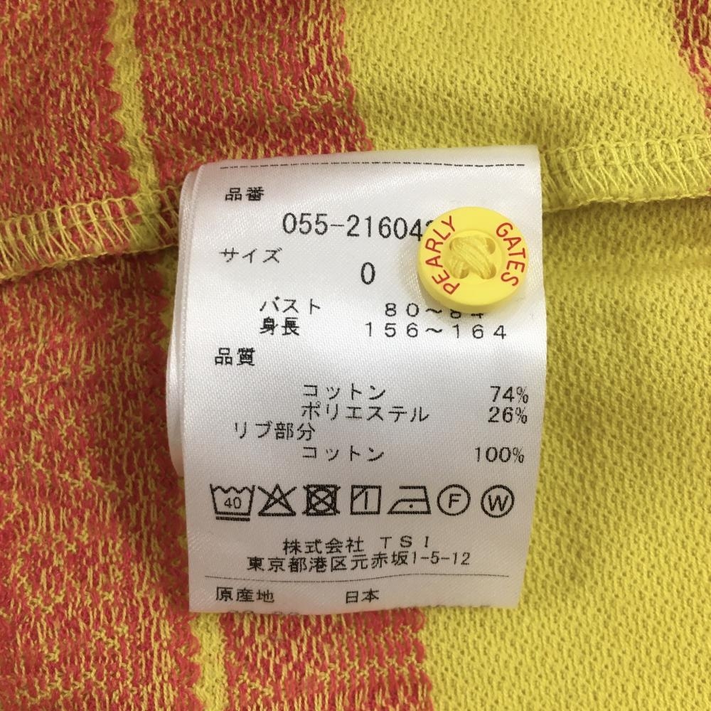 【美品】パーリーゲイツ 半袖ポロシャツ イエロー×ピンク ロゴボーダー風 レディース 0(S) ゴルフウェア 2022年モデル PEARLY GATES