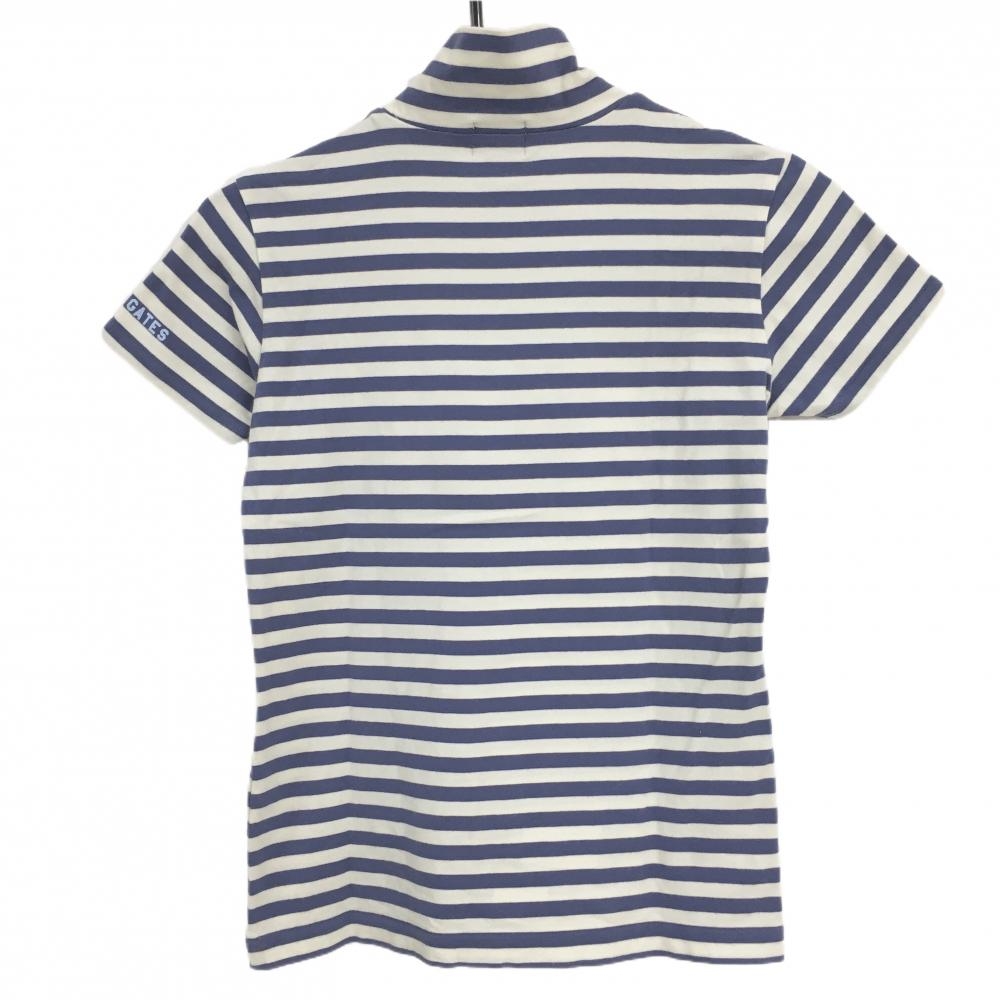 パーリーゲイツ 半袖ハイネックシャツ 白×ブルー系 ボーダー レディース 0(S) ゴルフウェア PEARLY GATES