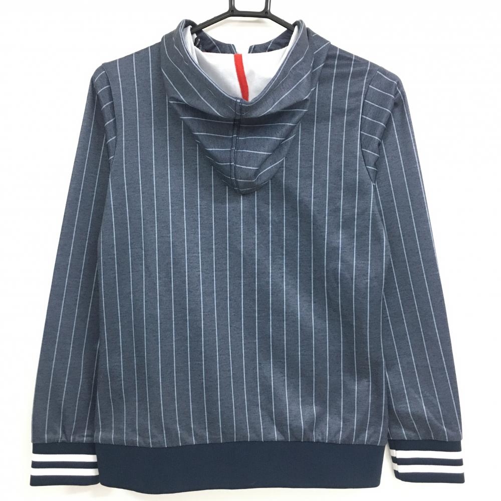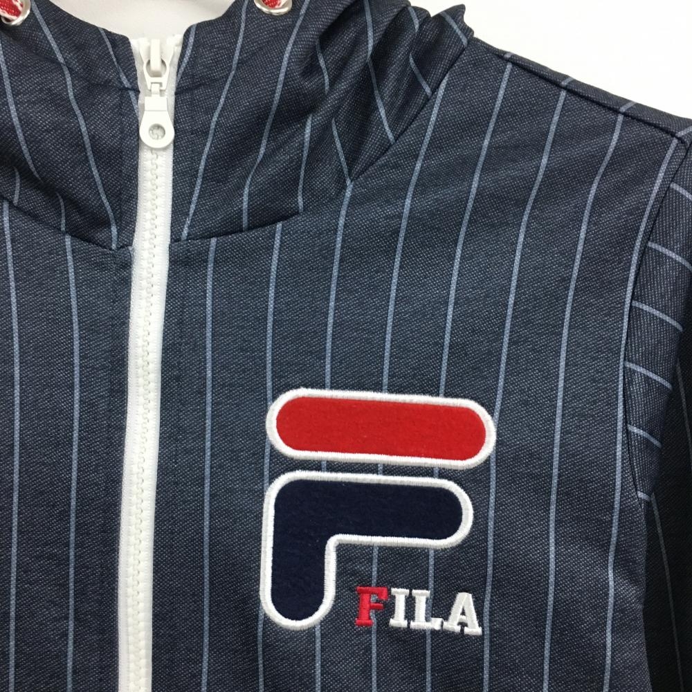フィラゴルフ ジップパーカー ネイビー ストライプ 胸ワッペン ポケット口毛羽立ち レディース M ゴルフウェア FILA GOLF