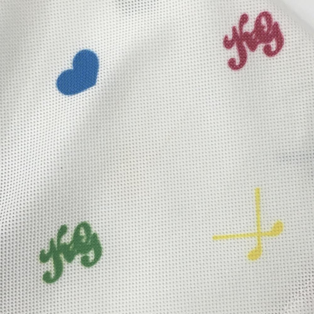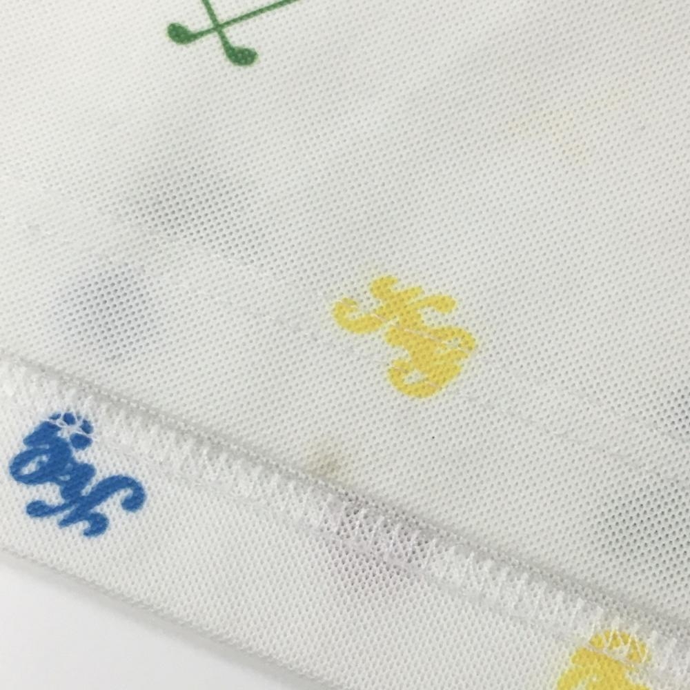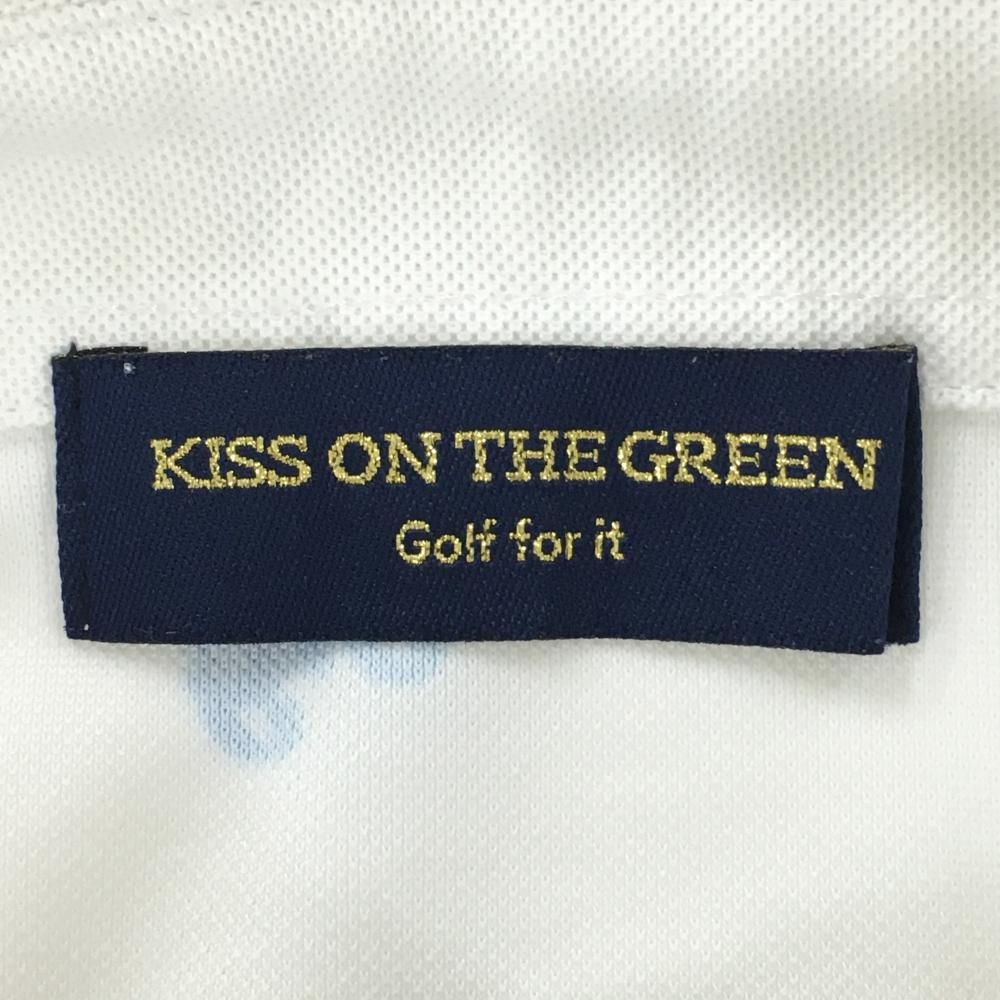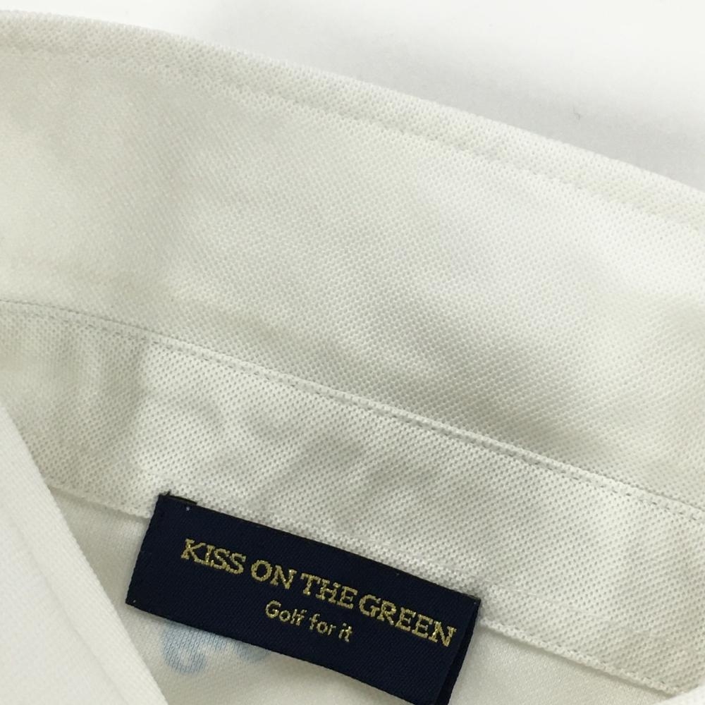 キスオンザグリーン 半袖ポロシャツ 白×マルチ 総柄 胸ロゴプリント レディース 2(M) ゴルフウェア kiss on the green