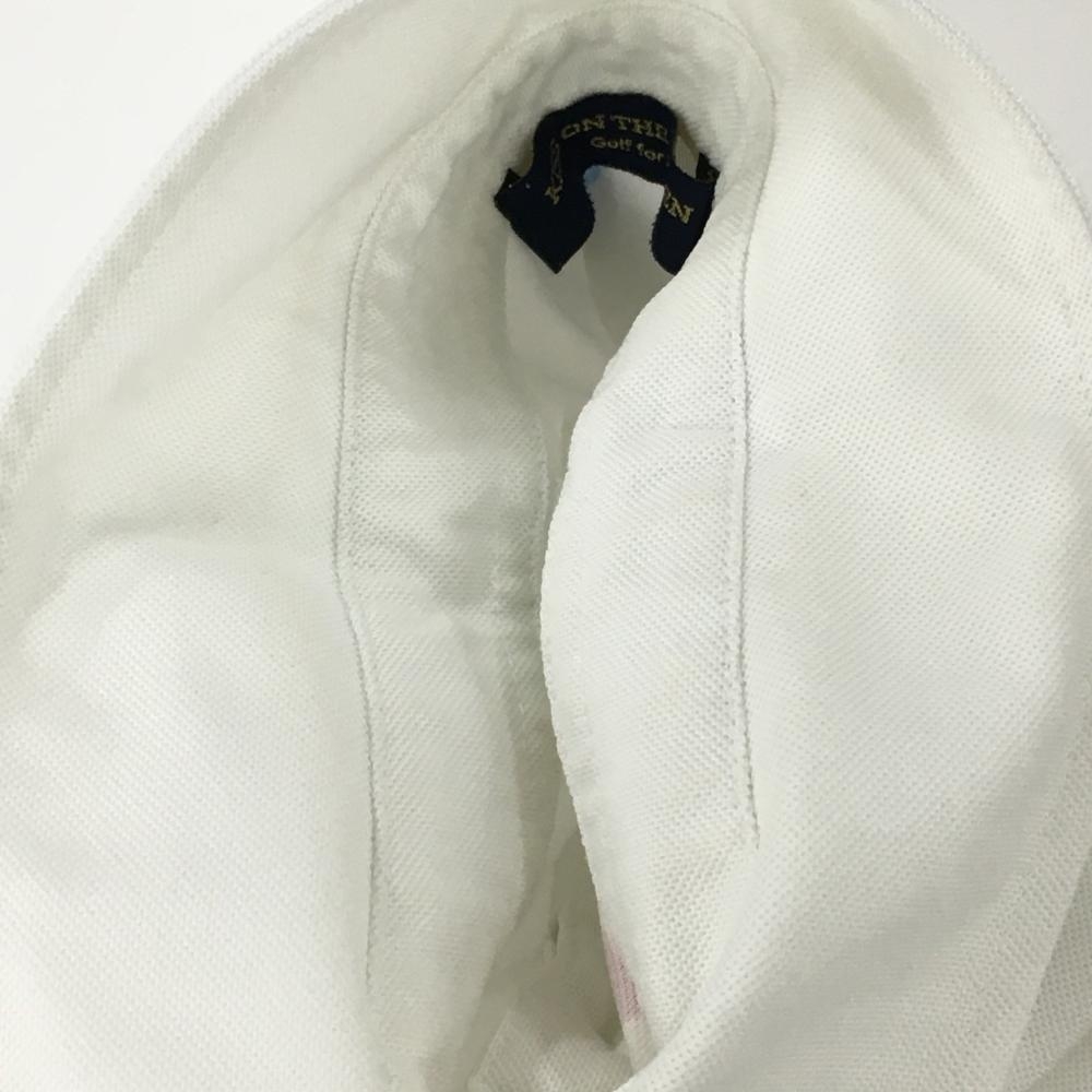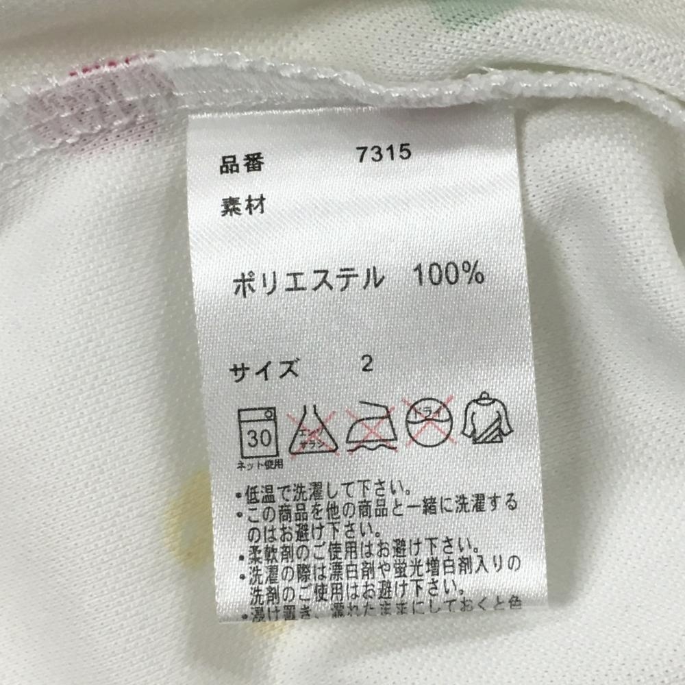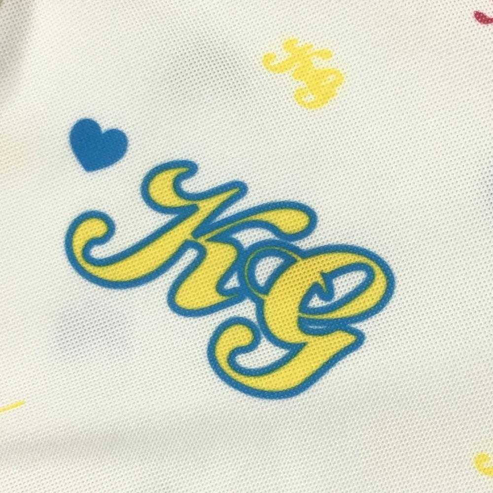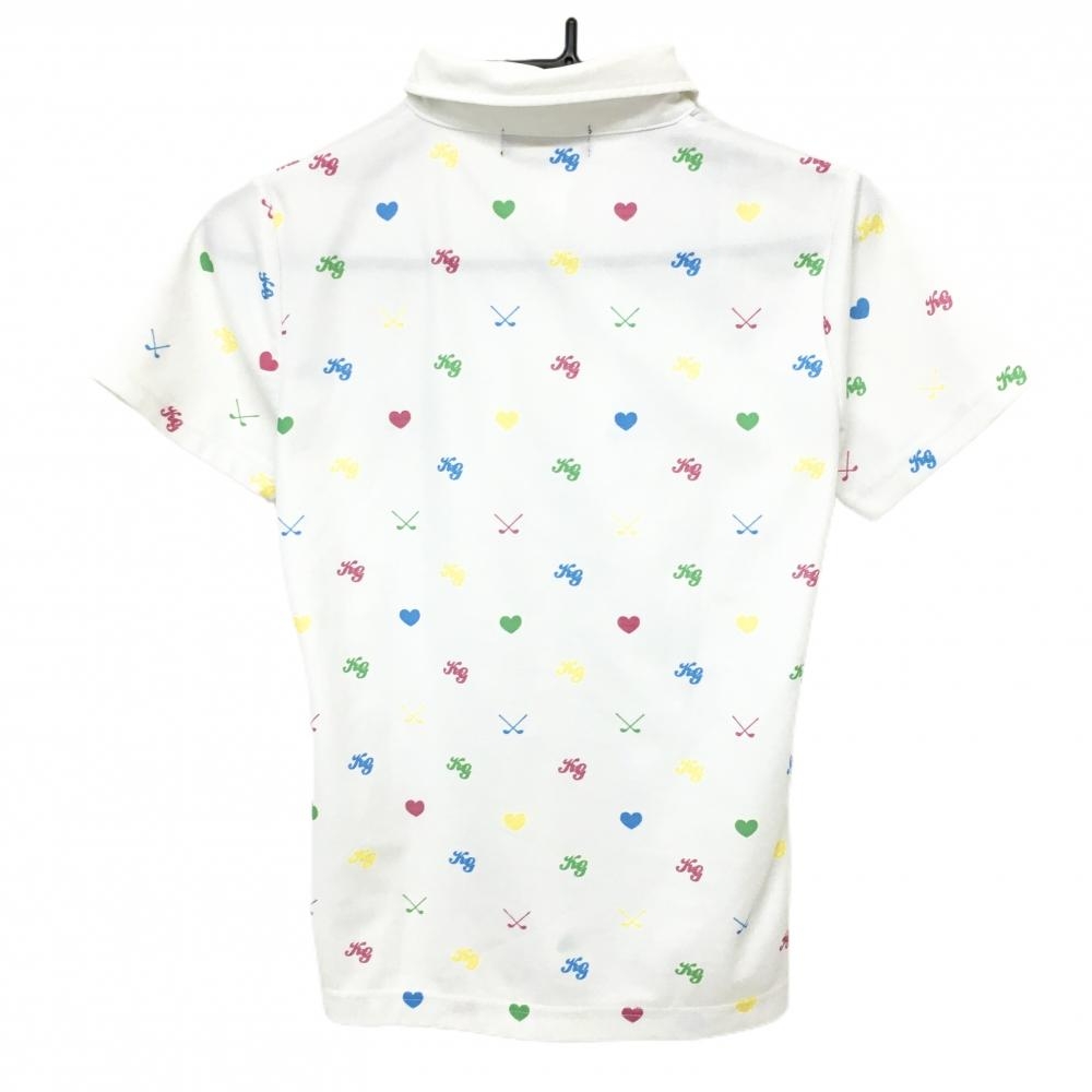 キスオンザグリーン 半袖ポロシャツ 白×マルチ 総柄 胸ロゴプリント レディース 2(M) ゴルフウェア kiss on the green