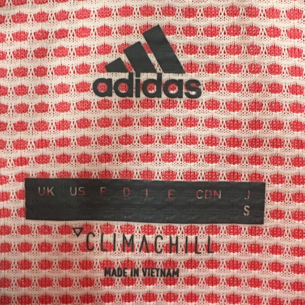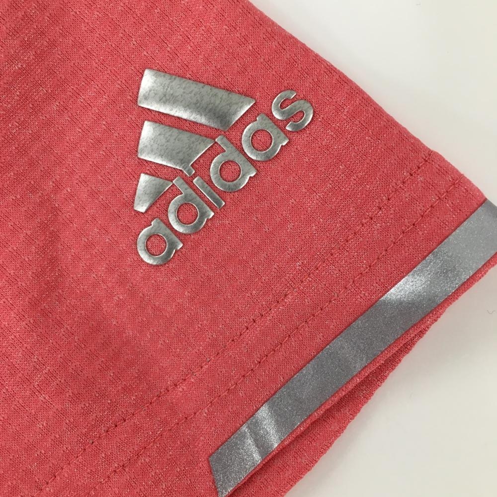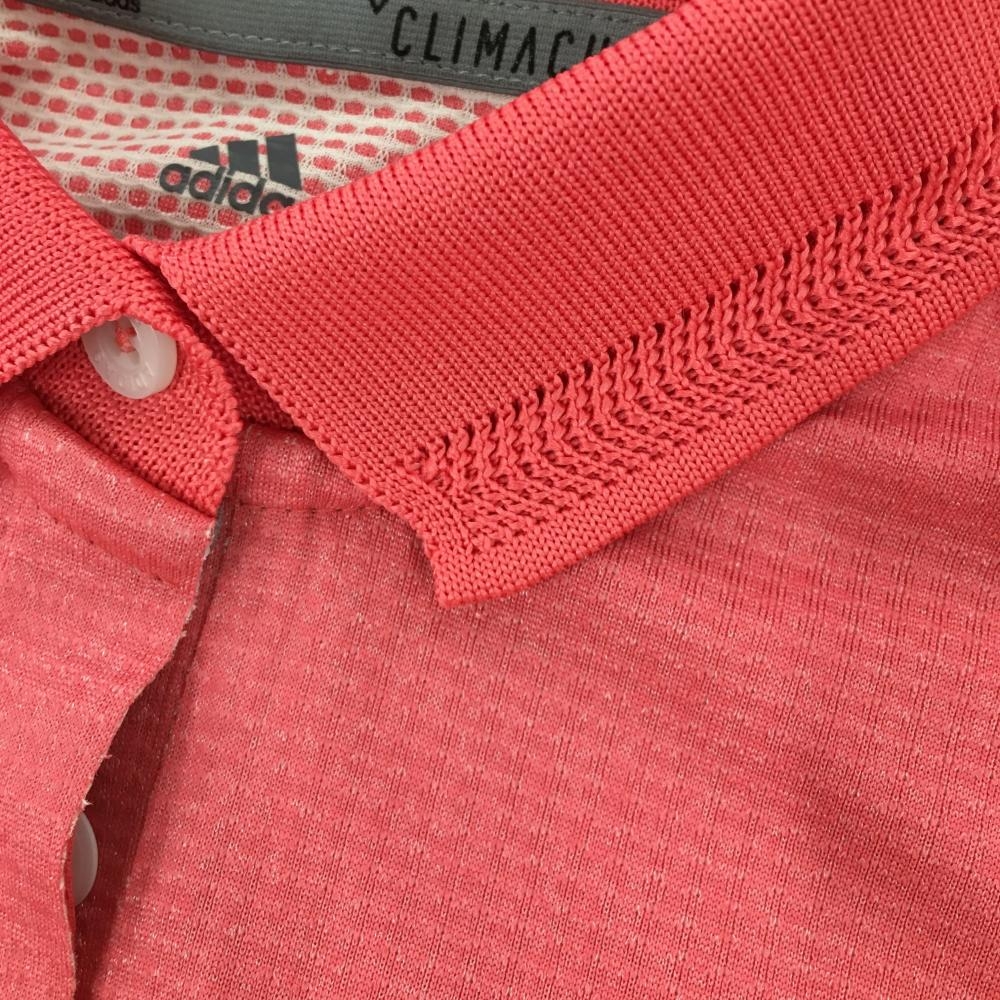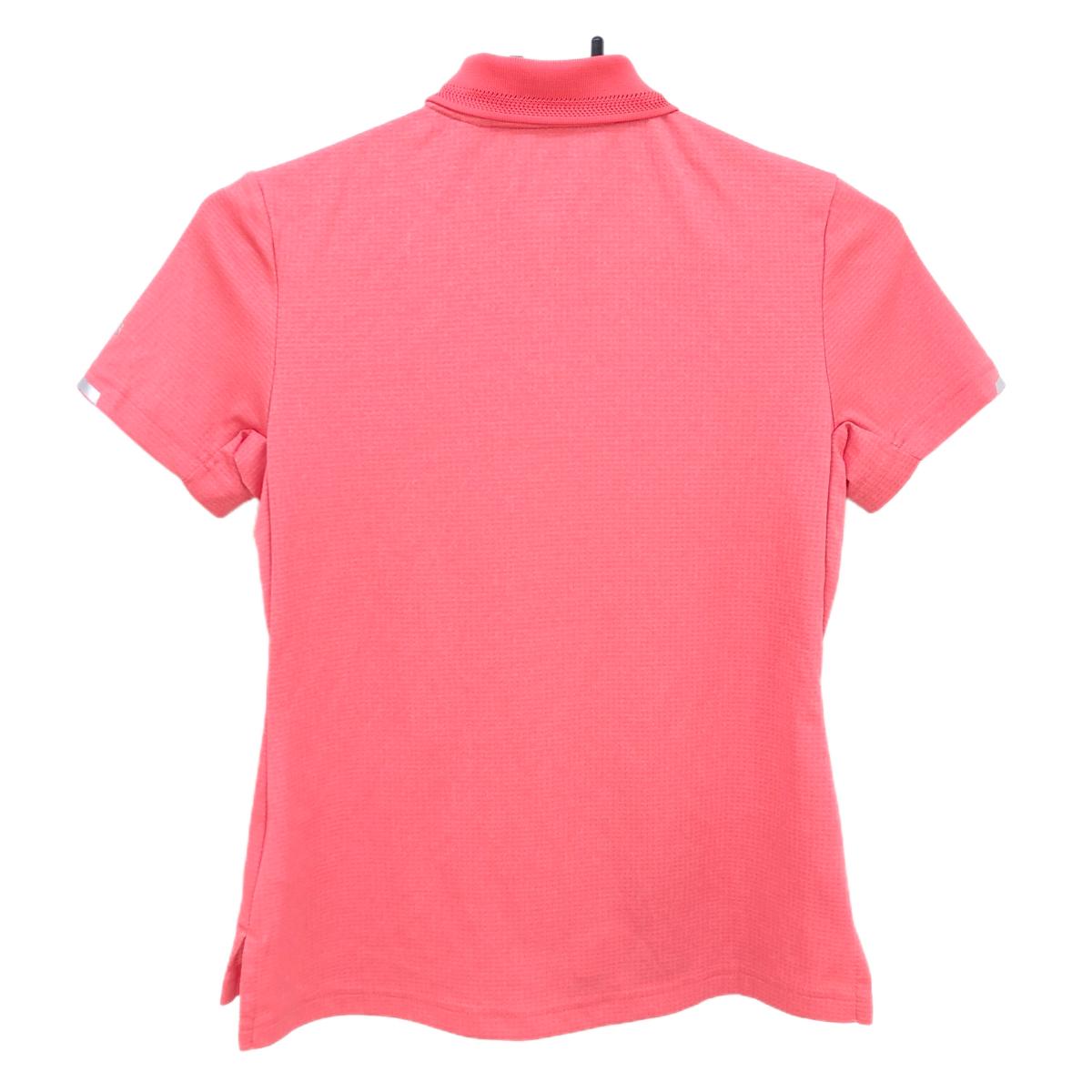 【美品】アディダス 半袖ポロシャツ ピンク 織生地 袖ロゴ 襟一部透かし編み レディース S ゴルフウェア adidas