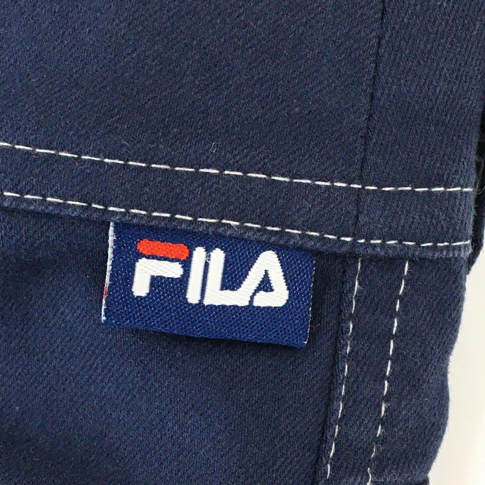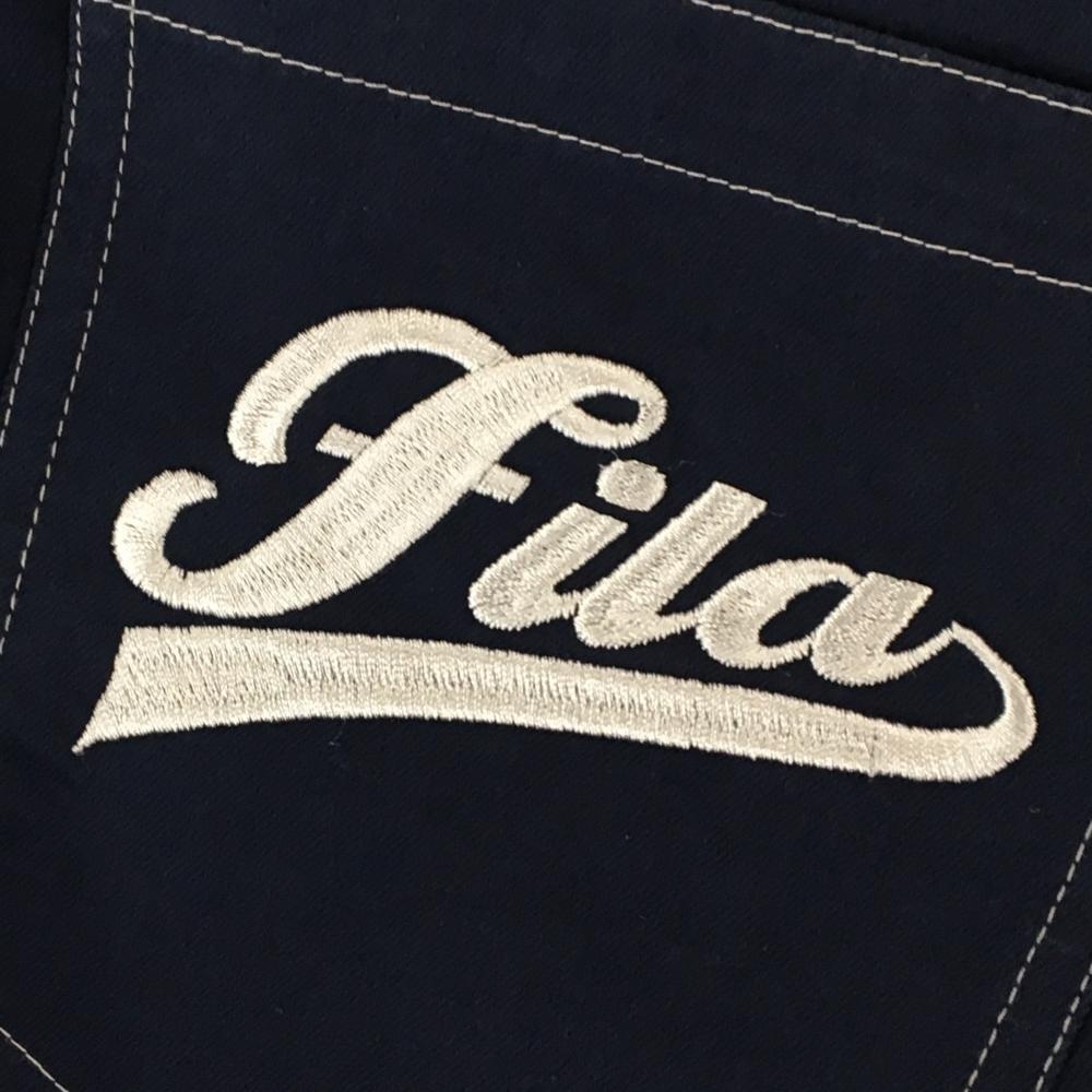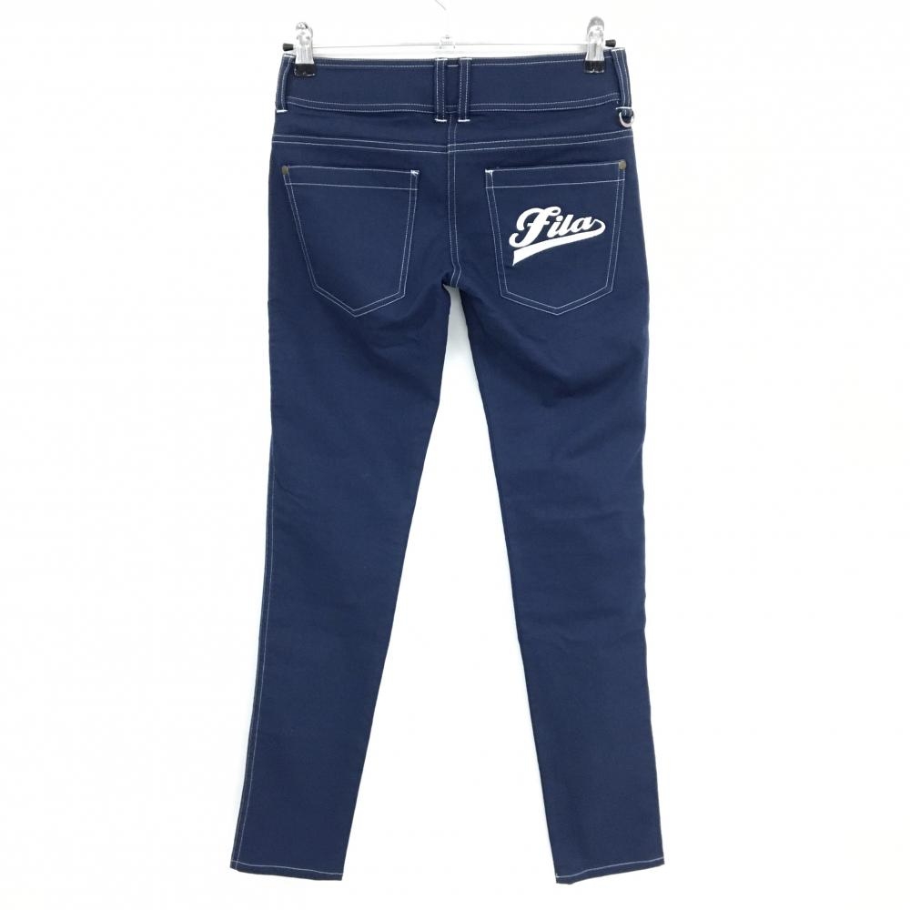 【美品】フィラゴルフ パンツ ネイビー×白 ステッチ ロゴ刺しゅう レディース S ゴルフウェア FILA GOLF