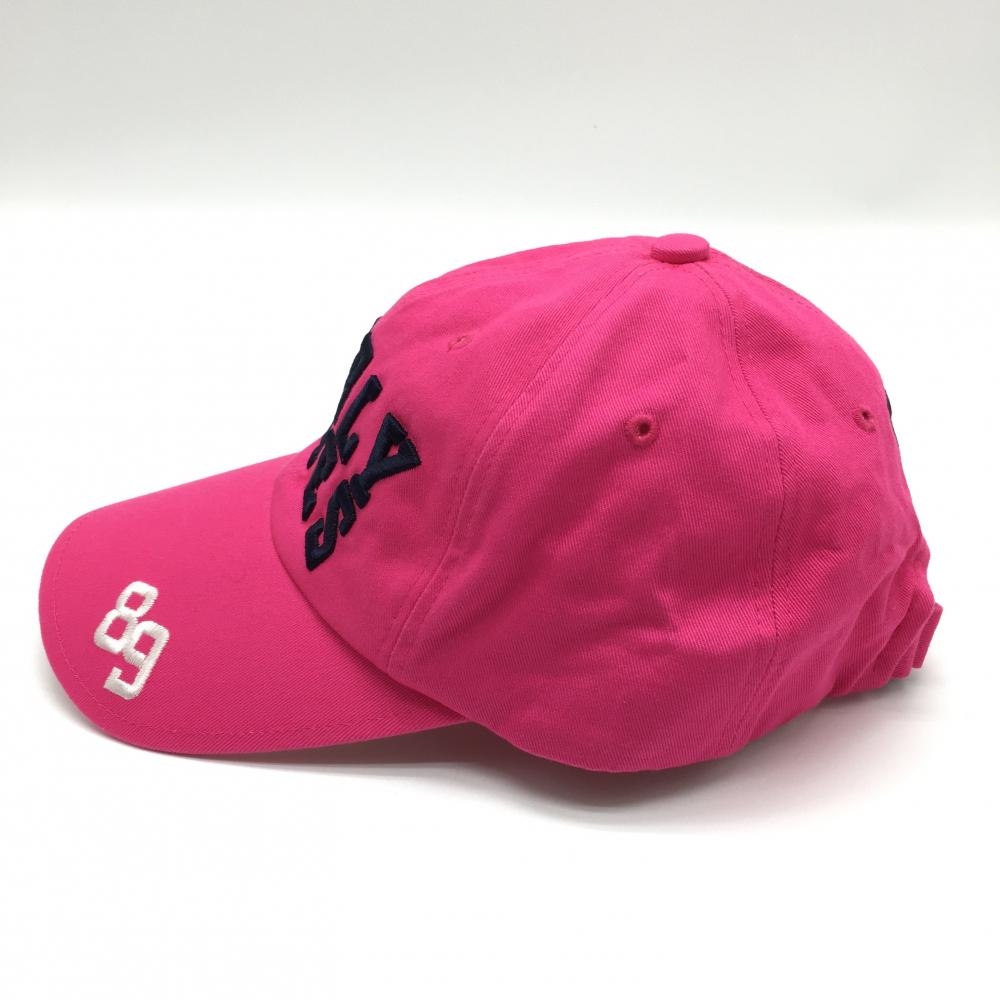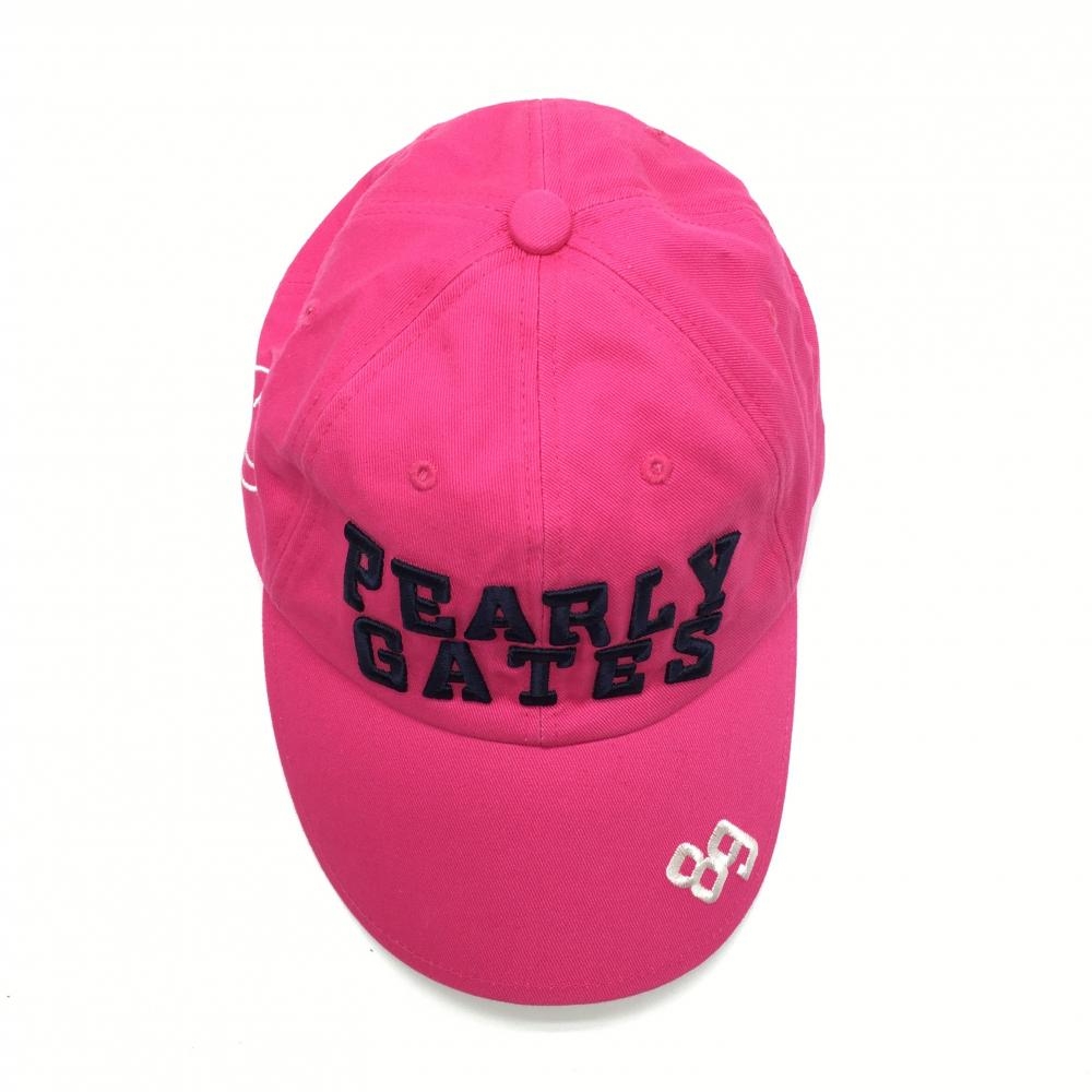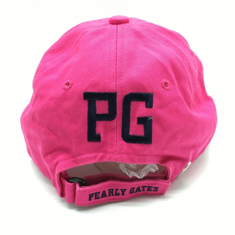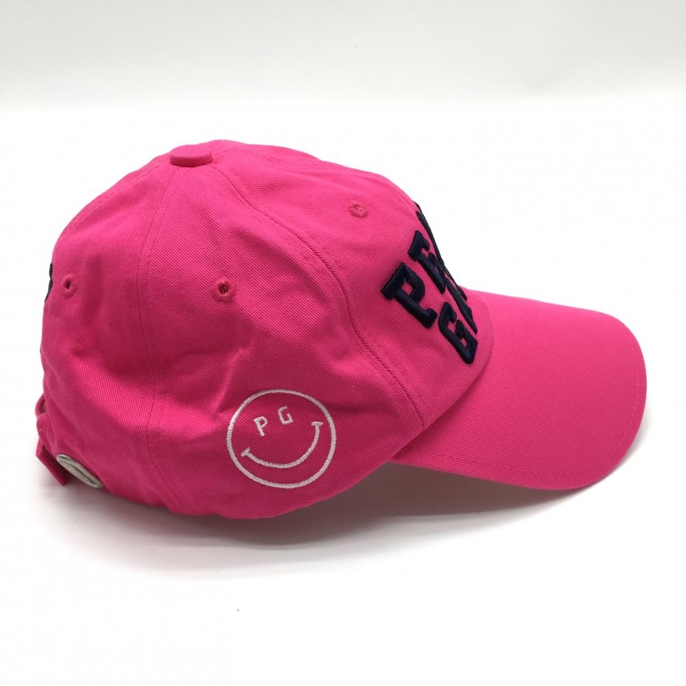 【美品】パーリーゲイツ キャップ ピンク×ネイビー ニコちゃん スマイル コットン100% 立体ロゴ刺しゅう FR ゴルフウェア PEARLY GATES