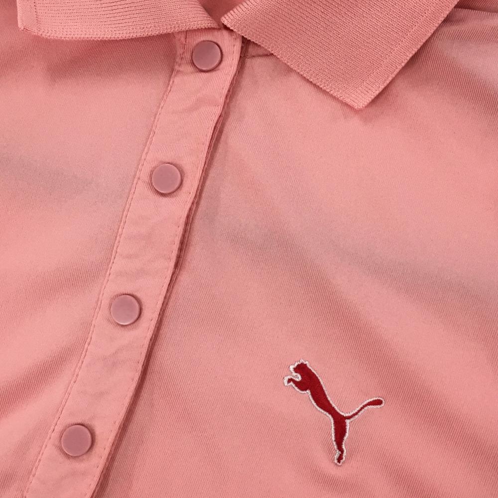 【美品】プーマ 半袖ポロシャツ ピンク ロゴ刺しゅう スナップボタン レディース US-XS ゴルフウェア PUMA