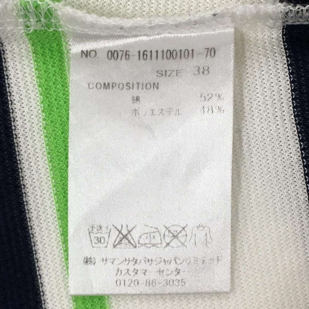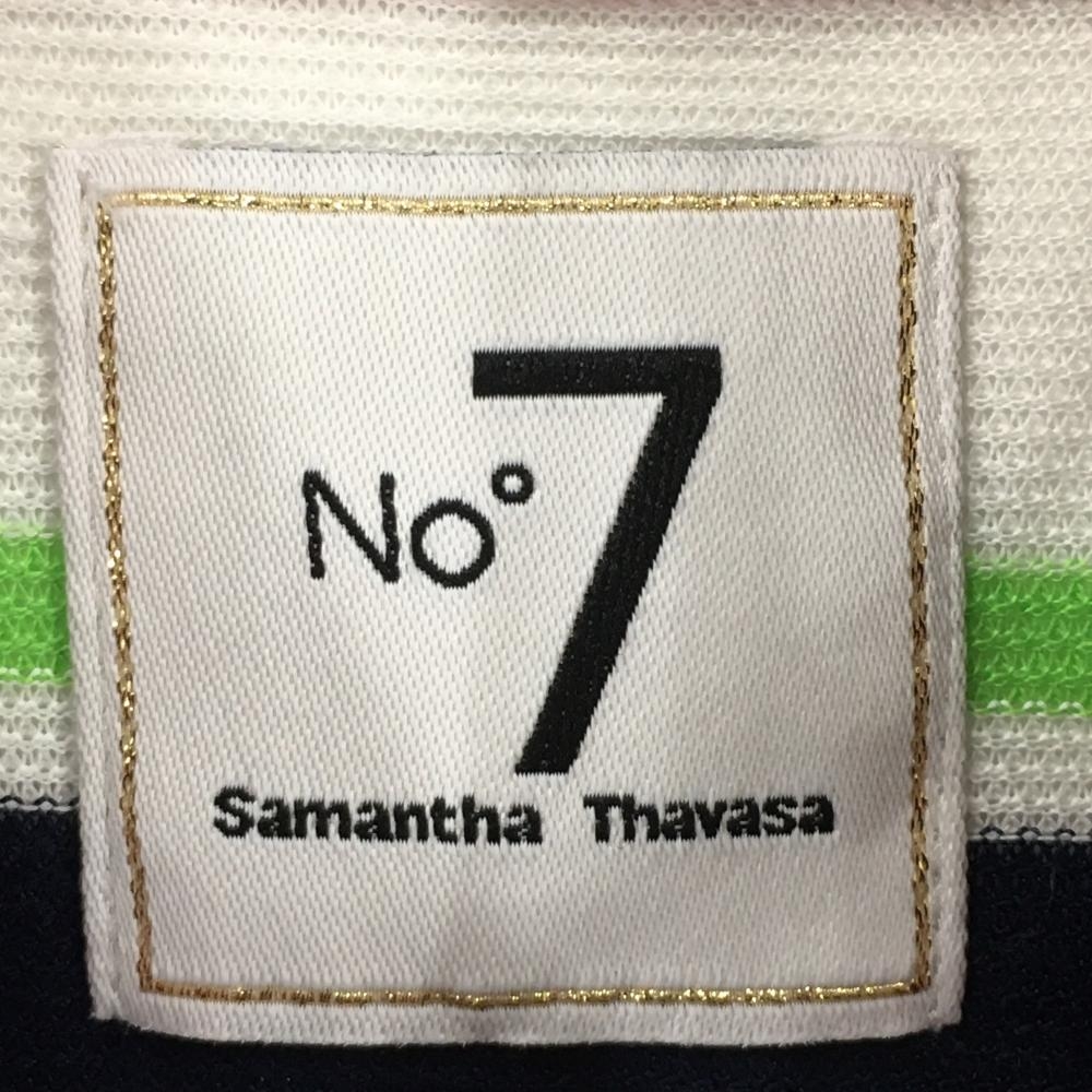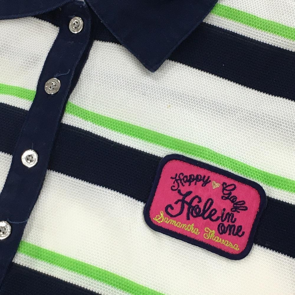 サマンサタバサNo.7 半袖ポロシャツ 白×ネイビー ボーダー 胸元ワッペン レディース 38(M) ゴルフウェア Samantha Thavasa