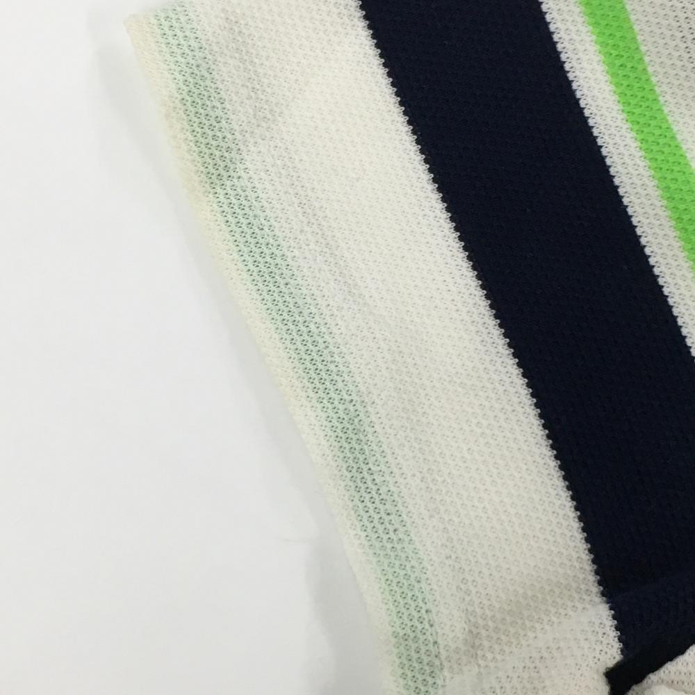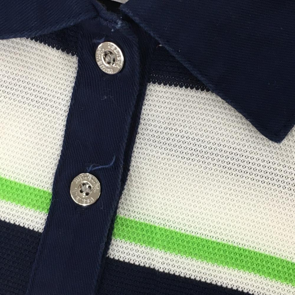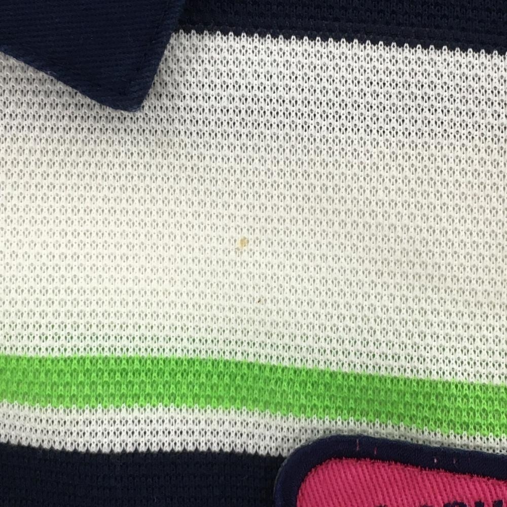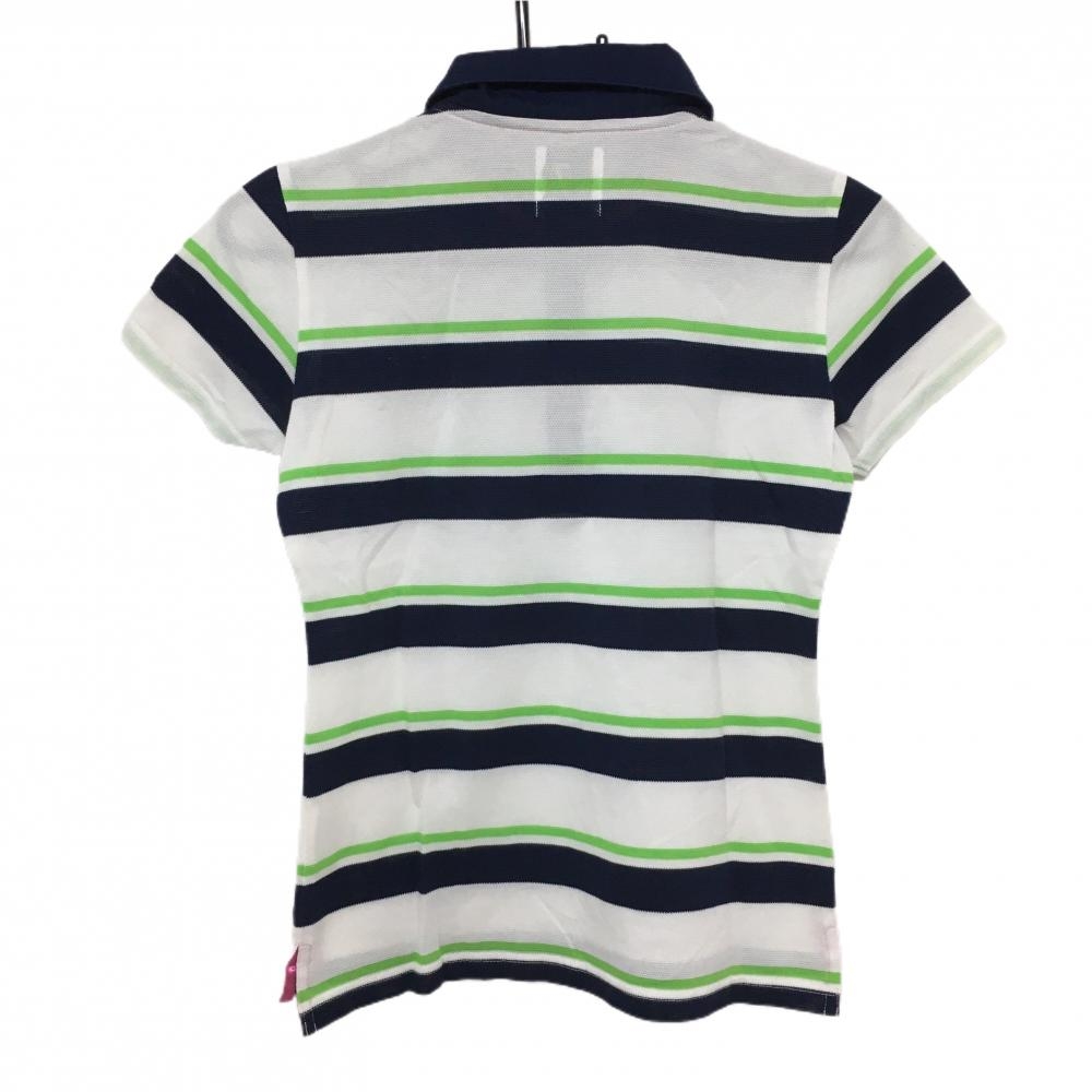 サマンサタバサNo.7 半袖ポロシャツ 白×ネイビー ボーダー 胸元ワッペン レディース 38(M) ゴルフウェア Samantha Thavasa