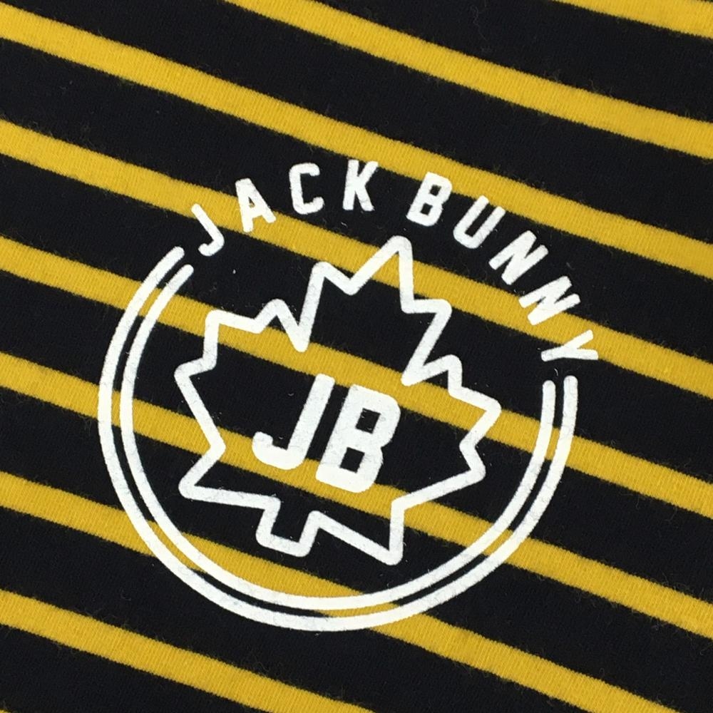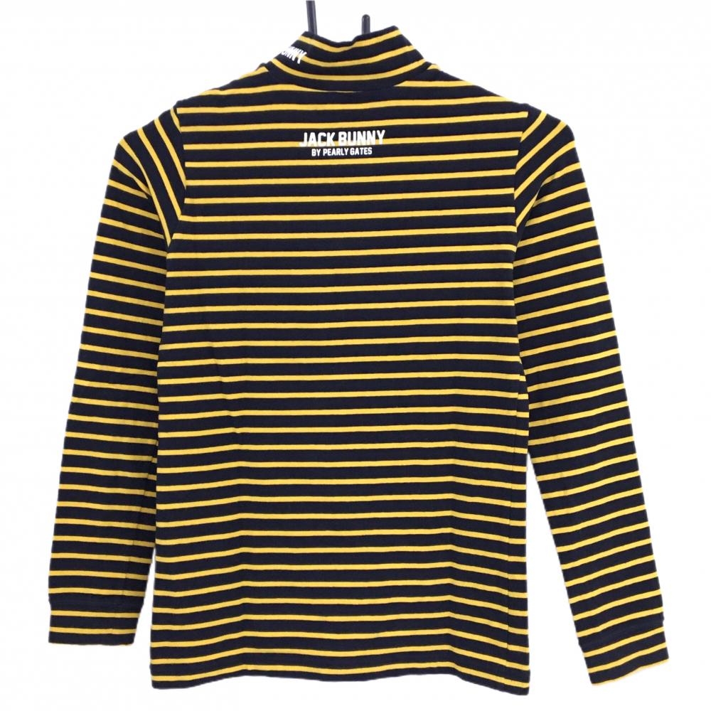 ジャックバニー 長袖ハイネックシャツ 黒×イエロー ボーダー柄 ネックロゴ ストレッチ レディース 0(S) ゴルフウェア Jack Bunny