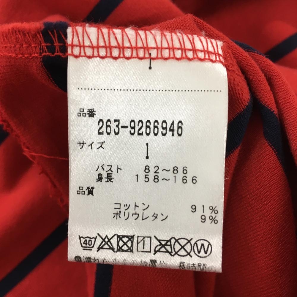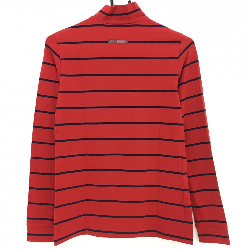 【美品】ジャックバニー 長袖ハイネックシャツ レッド×ネイビー ボーダー柄 レディース 1(M) ゴルフウェア Jack Bunny
