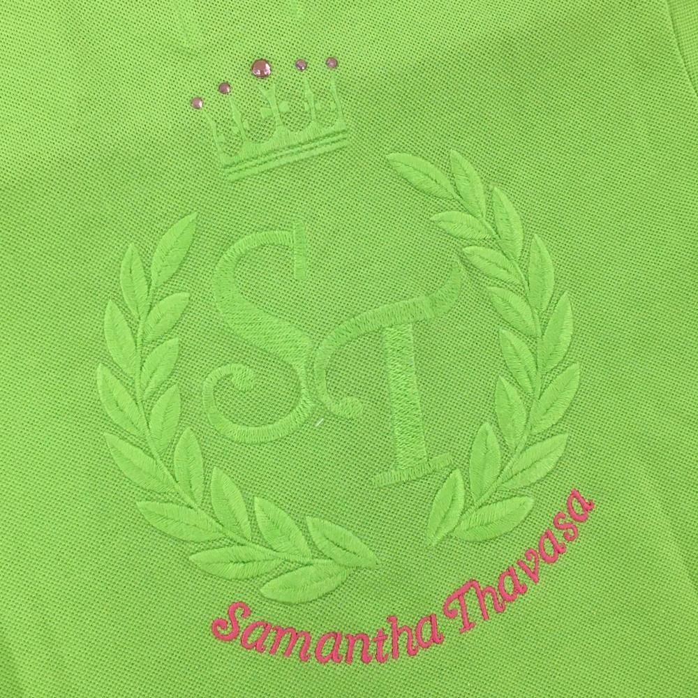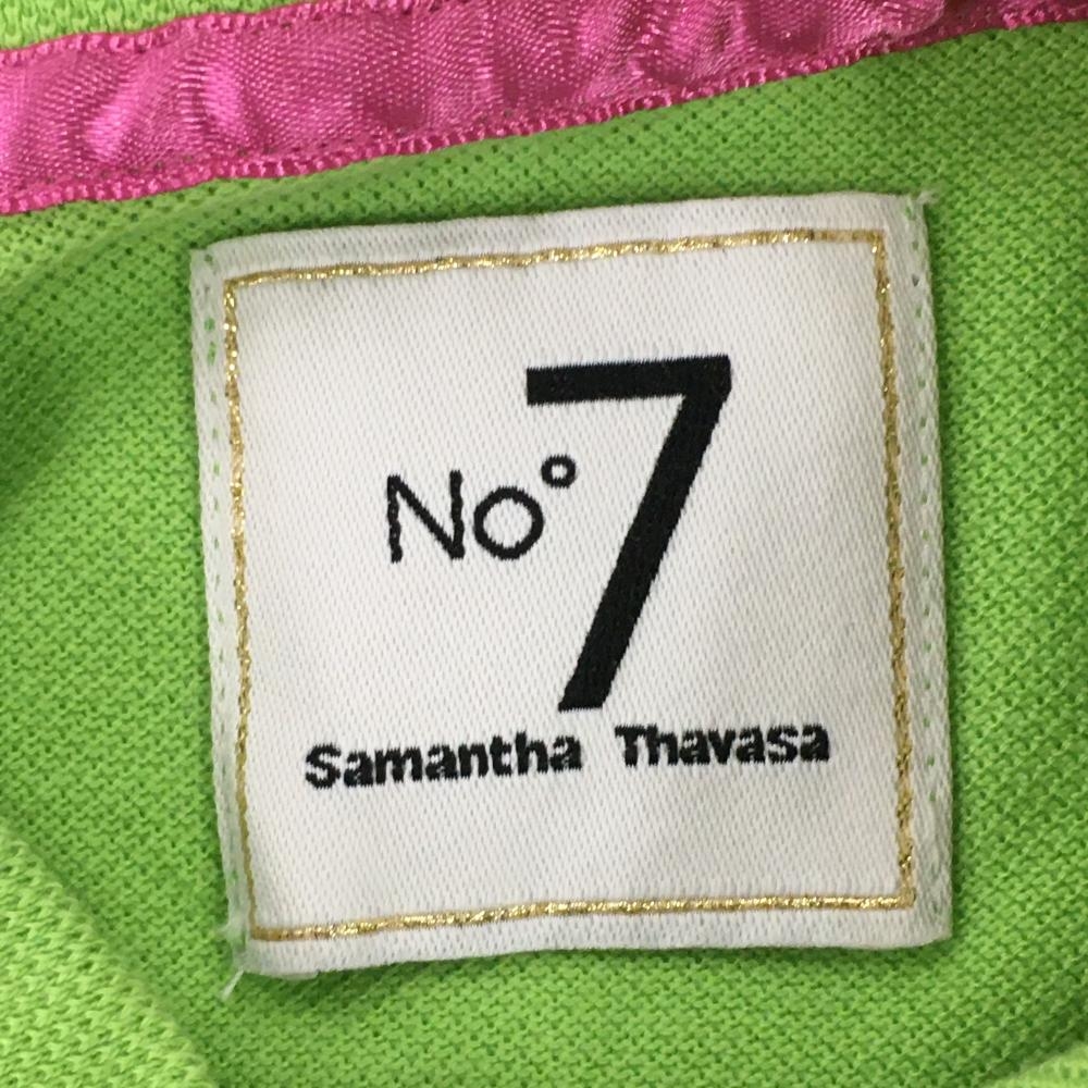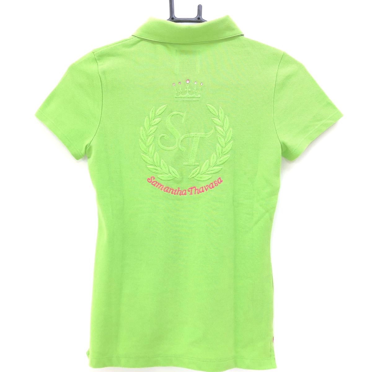 【美品】サマンサタバサ No7 半袖ポロシャツ ライトグリーン バックロゴ ラインストーン レディース 36(S) ゴルフウェア Samantha Thavasa