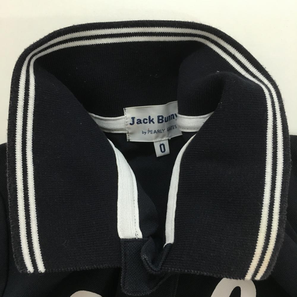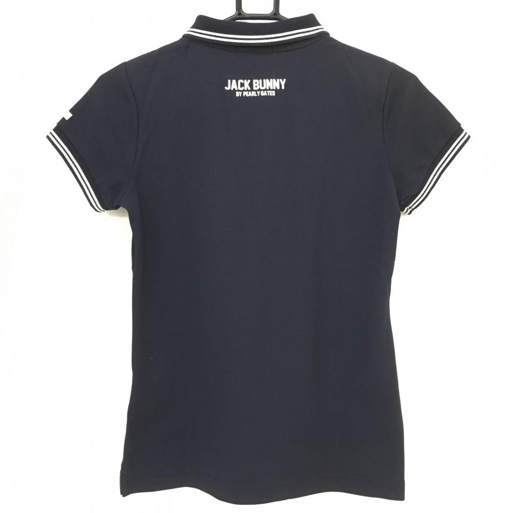 ジャックバニー 半袖ポロシャツ ネイビー×白 ビッグロゴプリント 襟・袖口ライン レディース 0(S) ゴルフウェア Jack Bunny