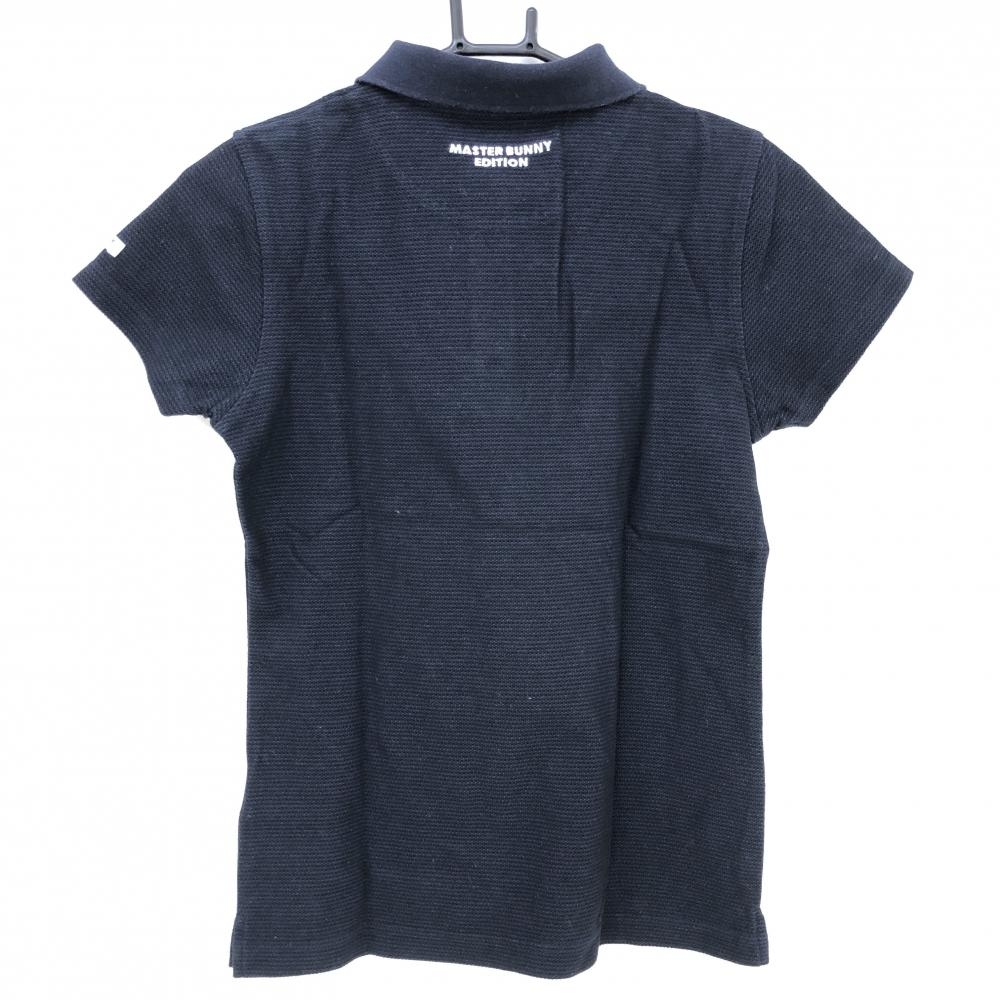 【美品】マスターバニー 半袖ポロシャツ ネイビー コットン混 ロゴ白刺しゅう レディース 0(S) ゴルフウェア MASTER BUNNY EDITION