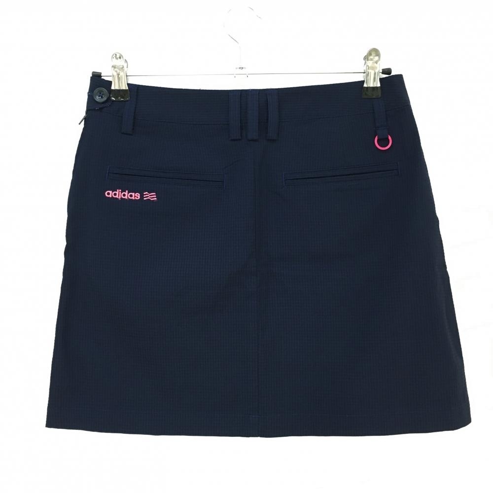アディダス スカート ネイビー×黒 ギンガムチェック サッカー生地 レディース M/M ゴルフウェア adidas
