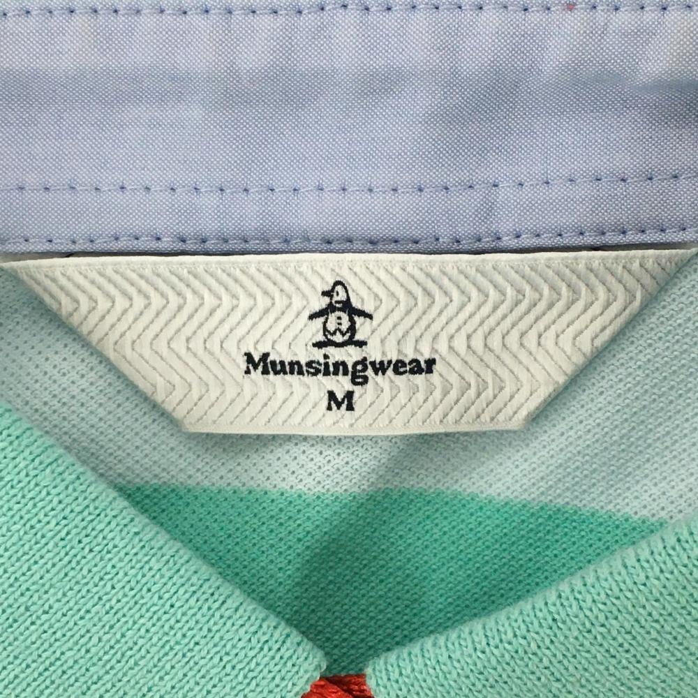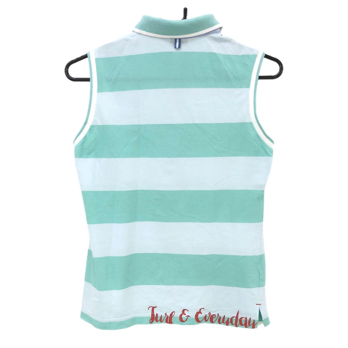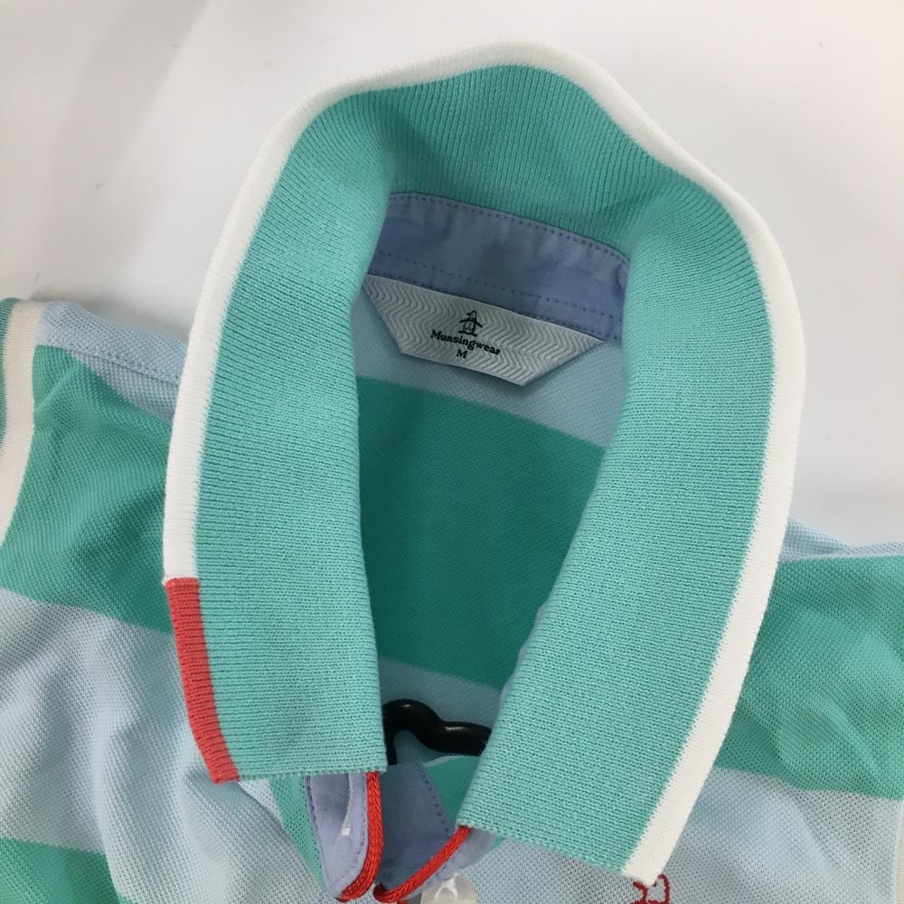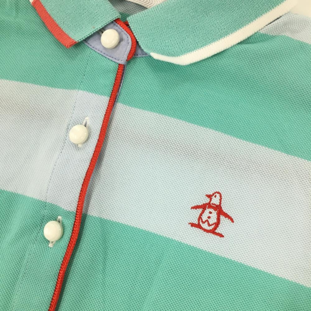 マンシングウェア ノースリーブポロシャツ ライトブルー×ライトグリーン ボーダー ロゴ刺しゅう レディース M ゴルフウェア Munsingwear