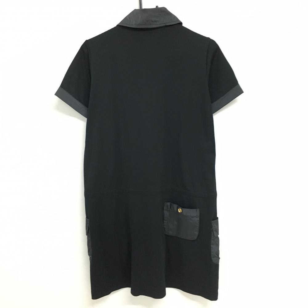アダバット 半袖ポロワンピース 黒 一部ナイロン切替 ウエスト紐調節可 レディース 38(M) ゴルフウェア adabat