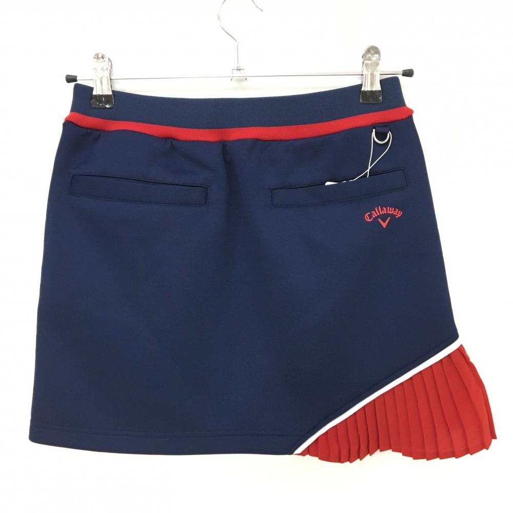 【新品】キャロウェイ スカート ネイビー×レッド 一部プリーツ ウエストゴム レディース SS ゴルフウェア 2022年モデル Callaway