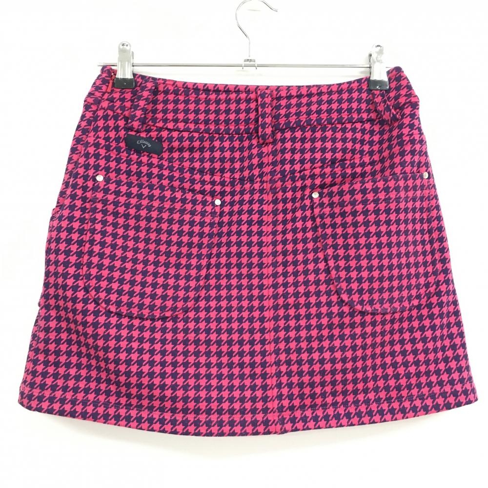 キャロウェイ スカート ピンク×パープル 千鳥柄 バックロゴ 裏起毛 レディース S ゴルフウェア Callaway