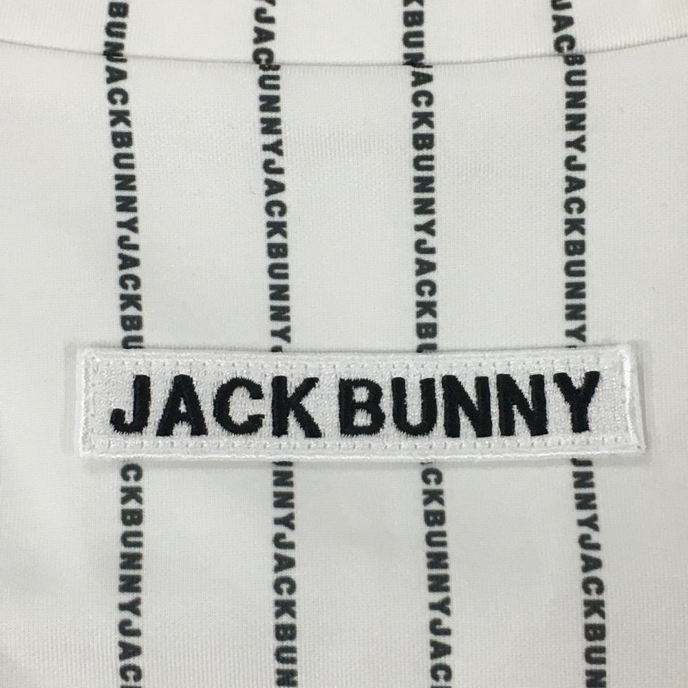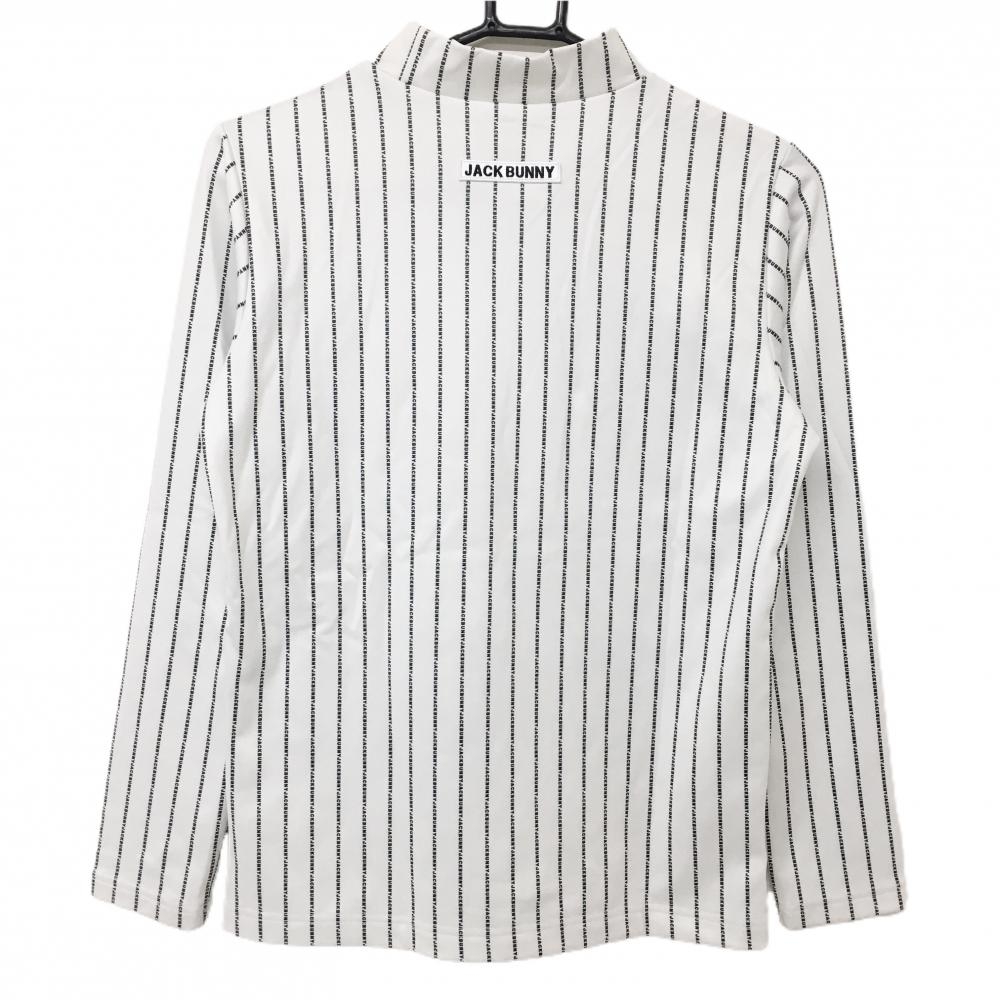 【超美品】ジャックバニー 長袖ハイネックシャツ 白×黒 ロゴストライプ 裏起毛 レディース 0(S) ゴルフウェア 2023年モデル Jack Bunny