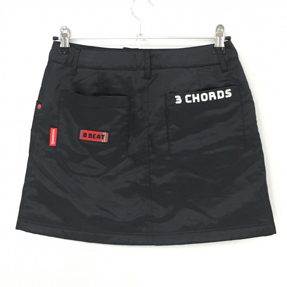 【超美品】ルコック 中綿スカート 黒×レッド 光沢感 ポケット一部チェック レディース 9 ゴルフウェア le coq sportif