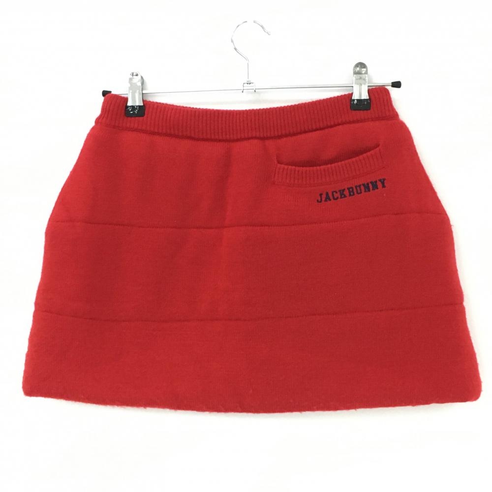 【美品】ジャックバニー 中綿ニットスカート レッド ウール混 ウエストゴム&調節紐 レディース 1(M) ゴルフウェア Jack Bunny