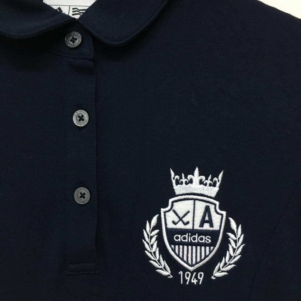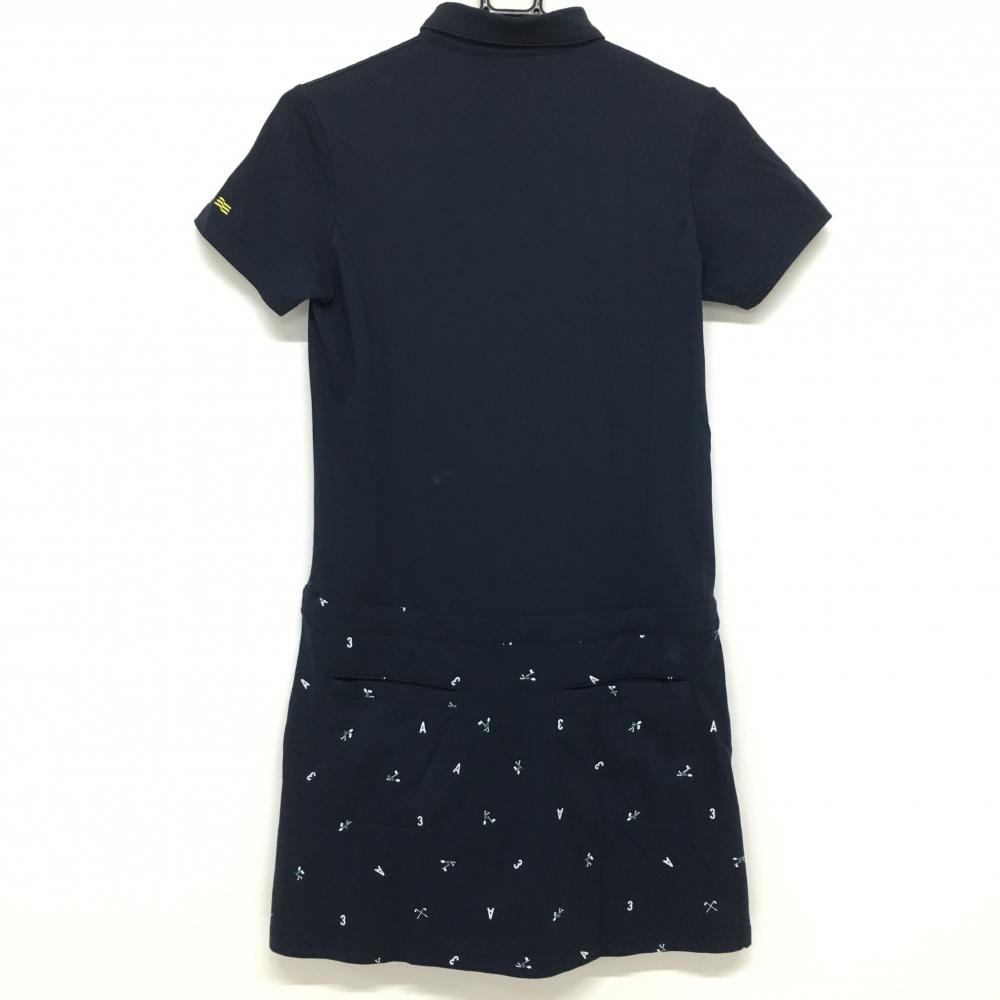 【美品】アディダス 半袖ポロワンピース ネイビー スカート総柄 刺しゅう レディース S/P ゴルフウェア adidas