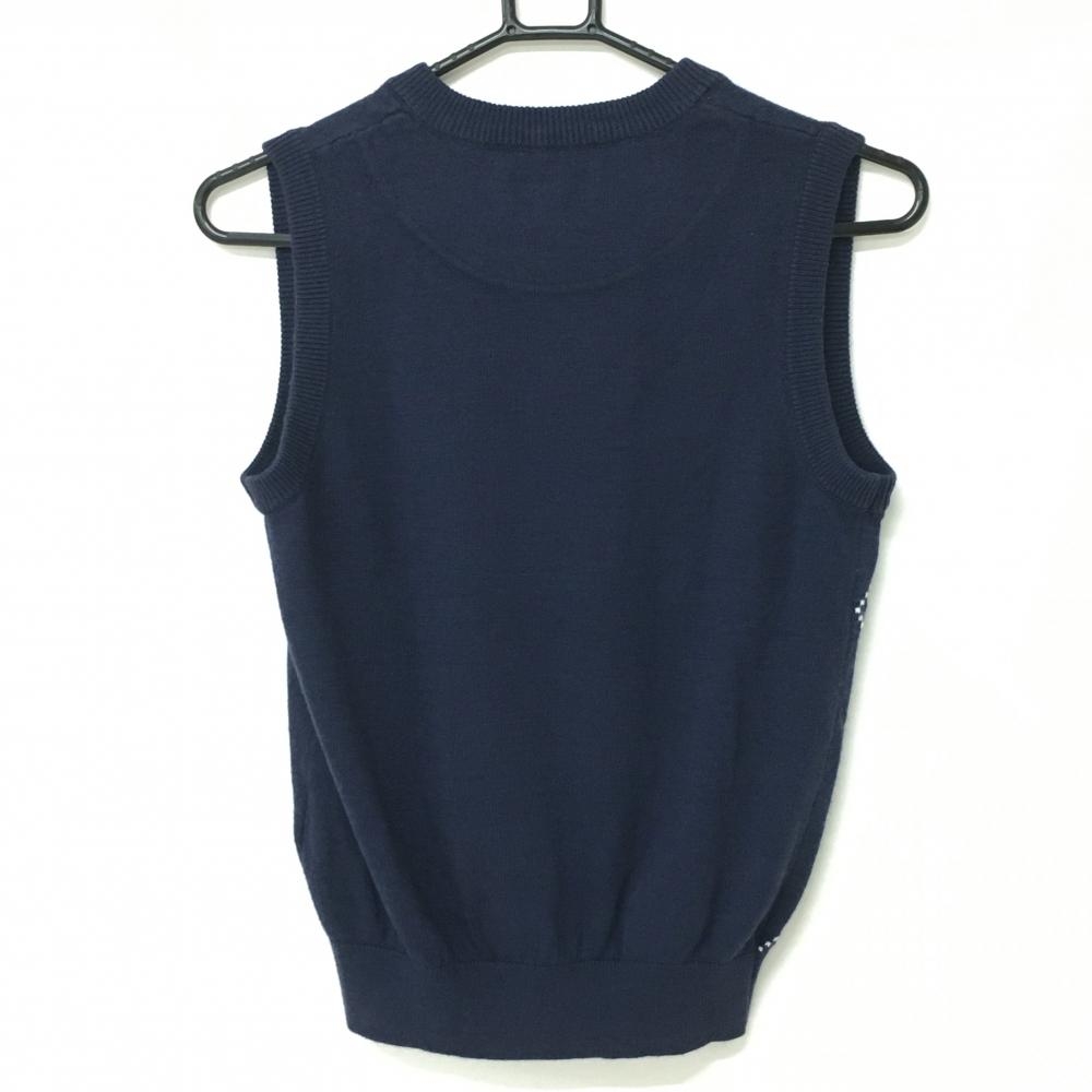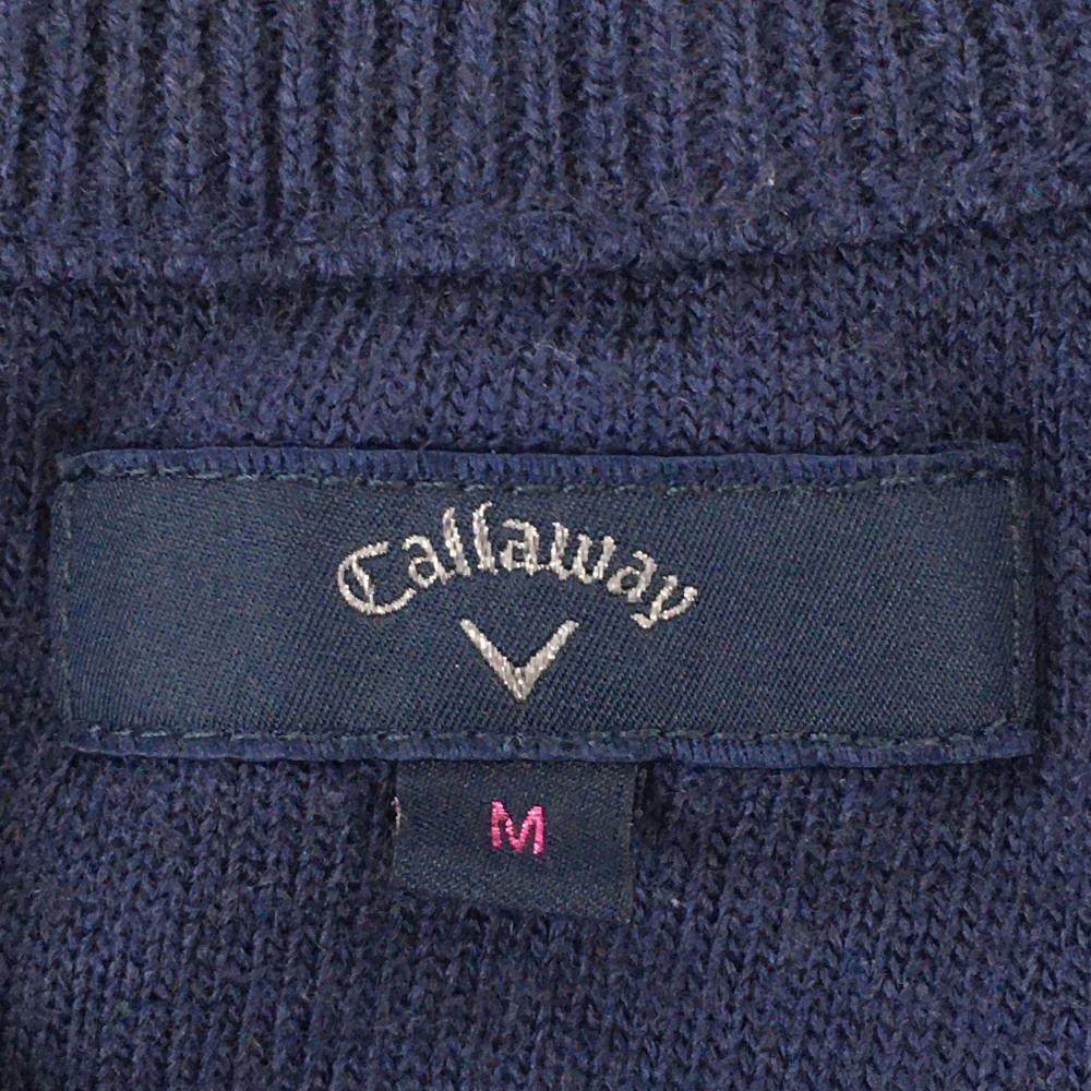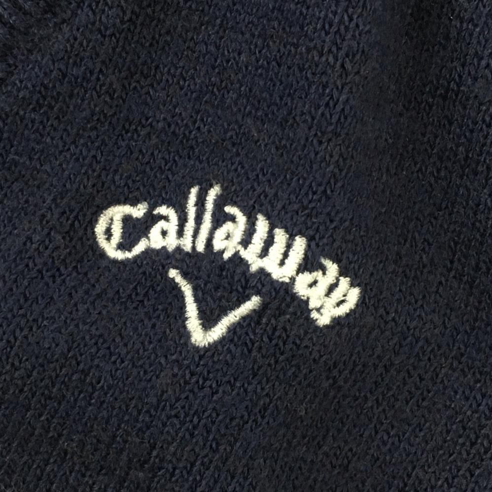【美品】キャロウェイ ニットベスト ネイビー×白 ダイヤ柄 Vネック ウール混 レディース M ゴルフウェア Callaway