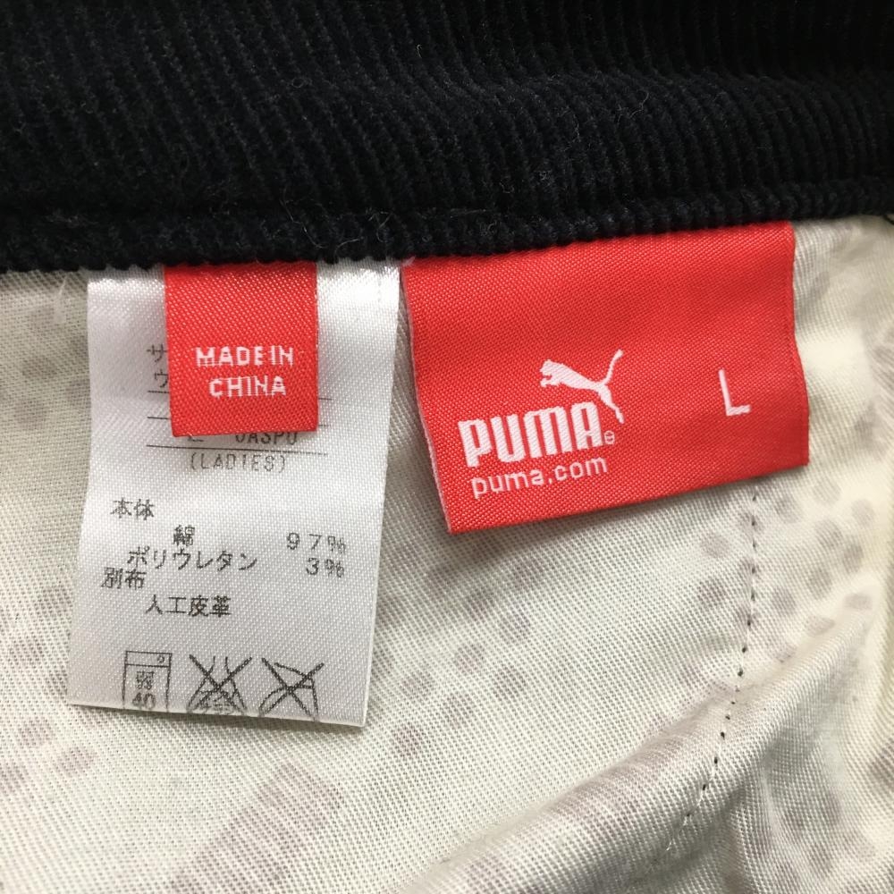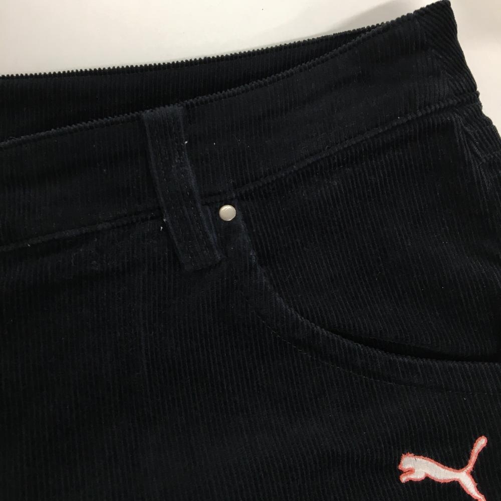 【美品】プーマ コーデュロイパンツ 黒 後ポケット刺しゅう レディース L ゴルフウェア PUMA