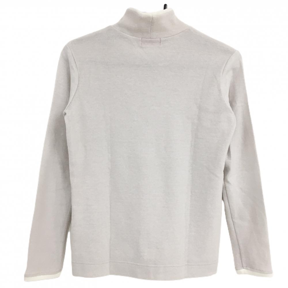 【美品】アルチビオ 長袖ハイネックシャツ ライトピンクベージュ×白 起毛 ネックロゴオレンジ レディース 36(S) ゴルフウェア archivio