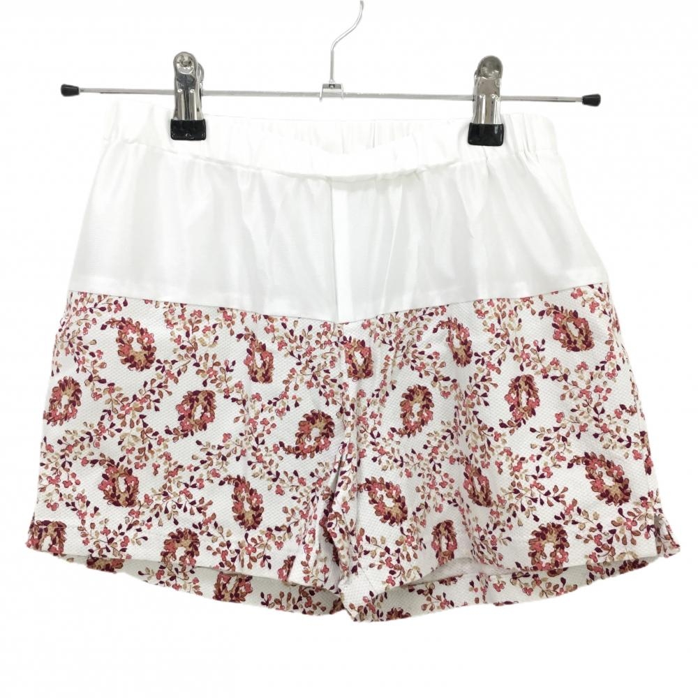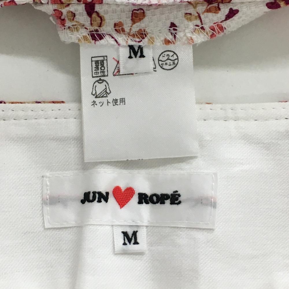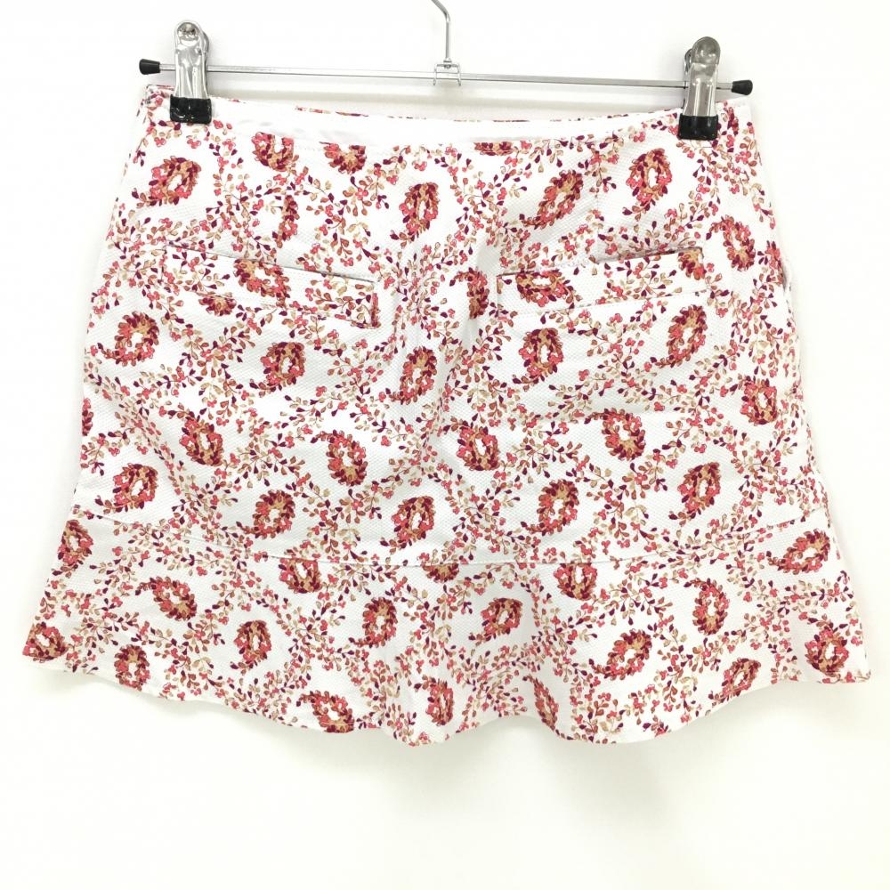 【超美品】ジュンアンドロペ スカート 白×ピンク 花柄 織生地 インナーパンツ付き レディース M ゴルフウェア JUN&ROPE