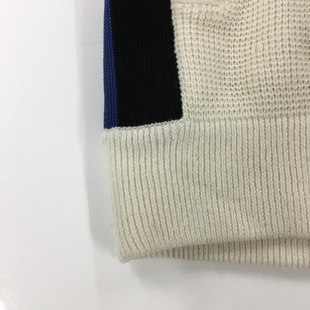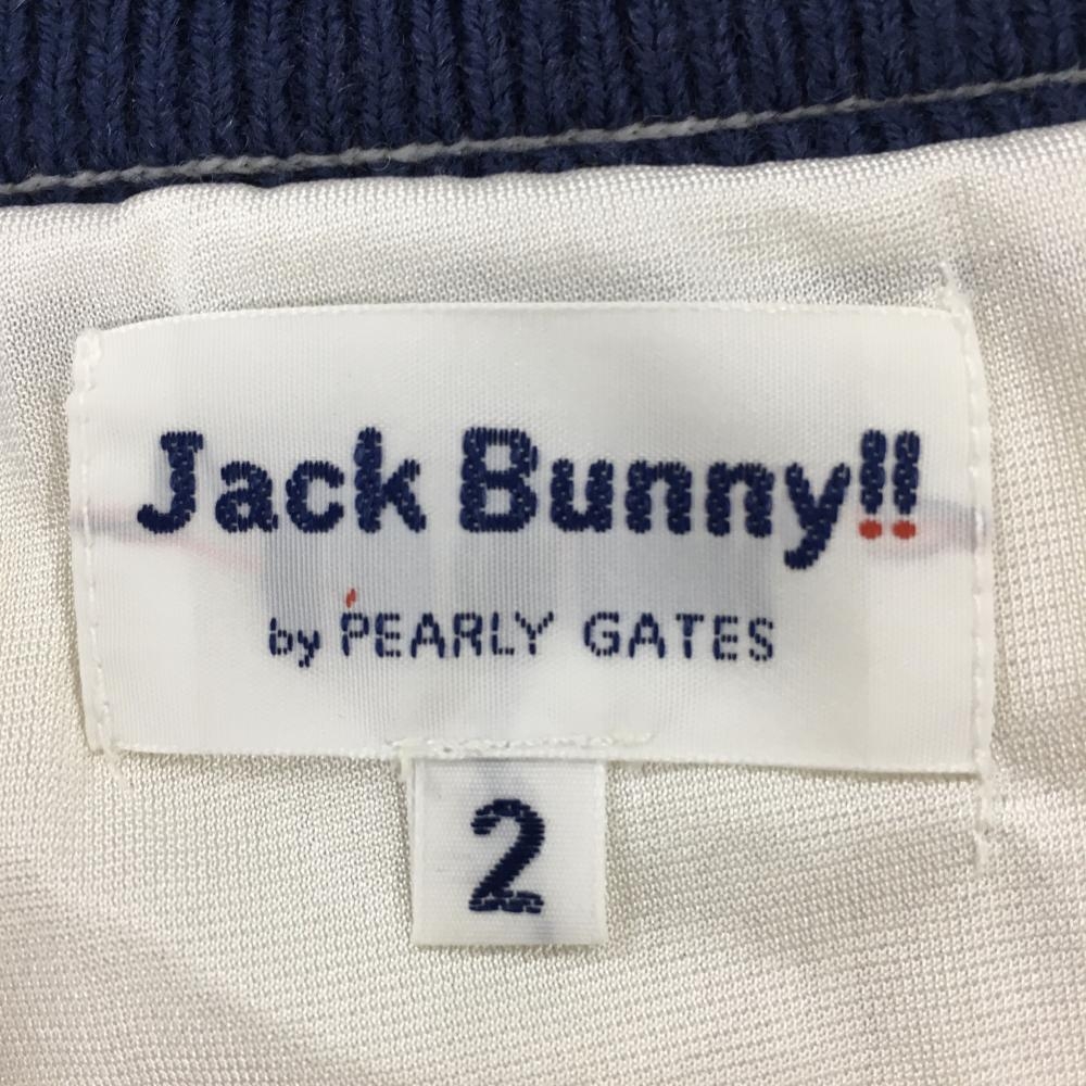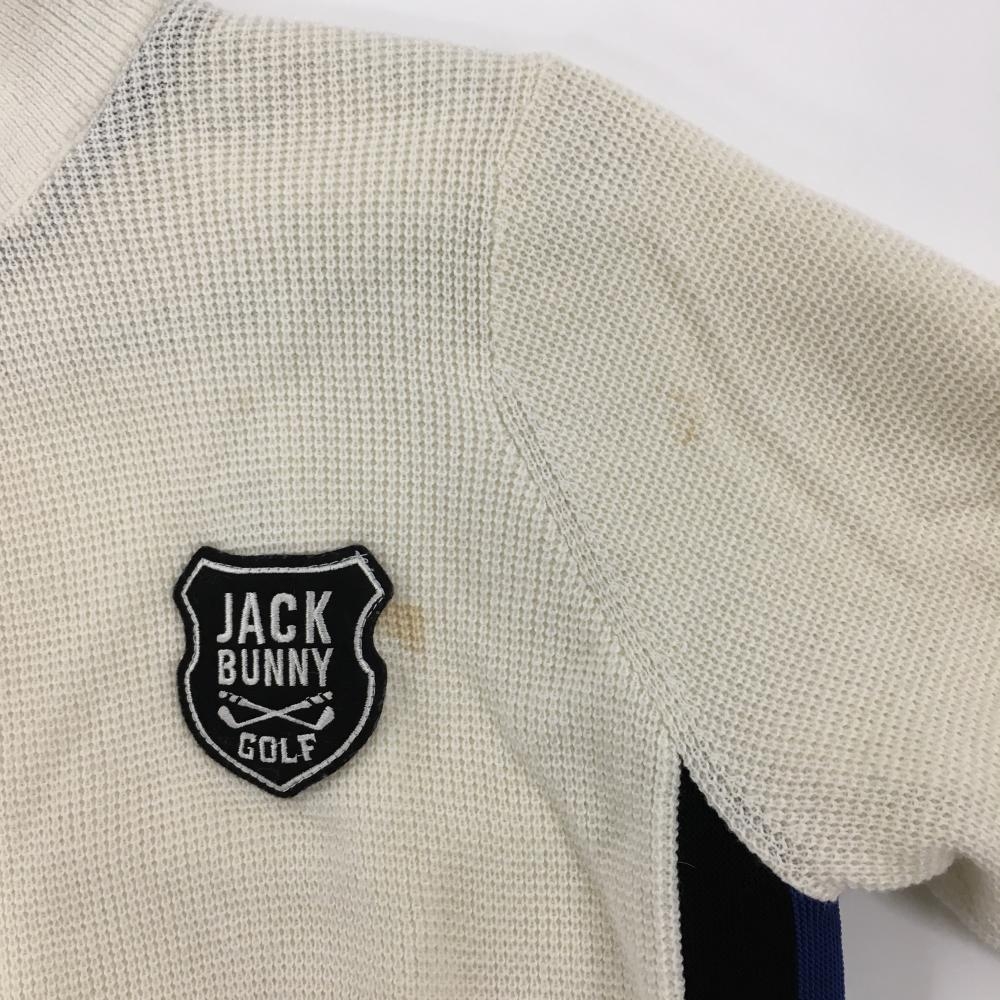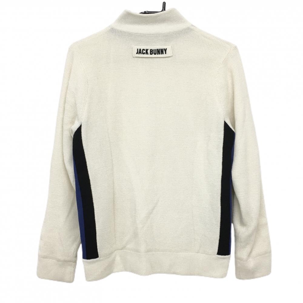 ジャックバニー ニットジャケット アイボリー×黒 裏地付き ロゴワッペン ウール混 レディース 2(L) ゴルフウェア Jack Bunny