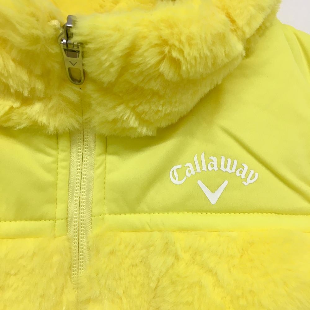 【超美品】キャロウェイ ボアベスト イエロー×白 ロゴプリント レディース S ゴルフウェア Callaway