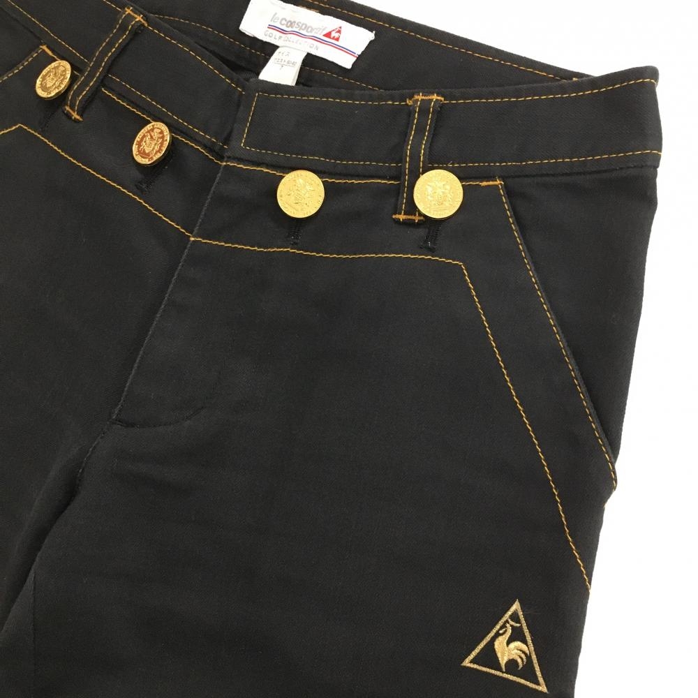 ルコック パンツ 黒 イエローステッチ ゴールドボタン レディース 7 ゴルフウェア le coq sportif