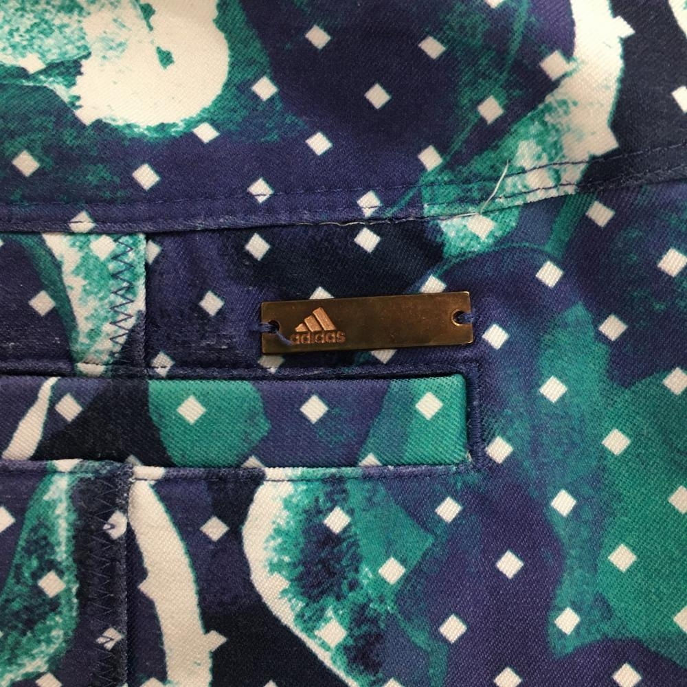 アディダス スカート パープル×グリーン 総柄 内側インナーパンツ レディース XS ゴルフウェア adidas