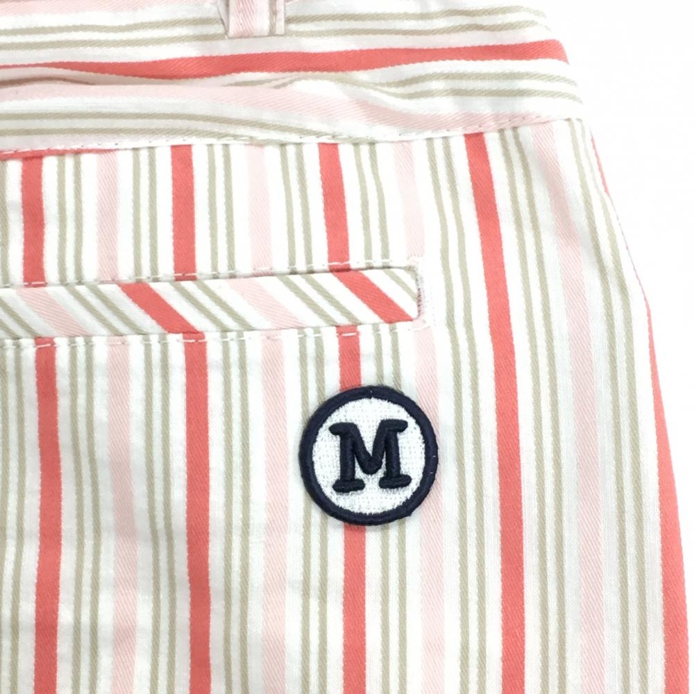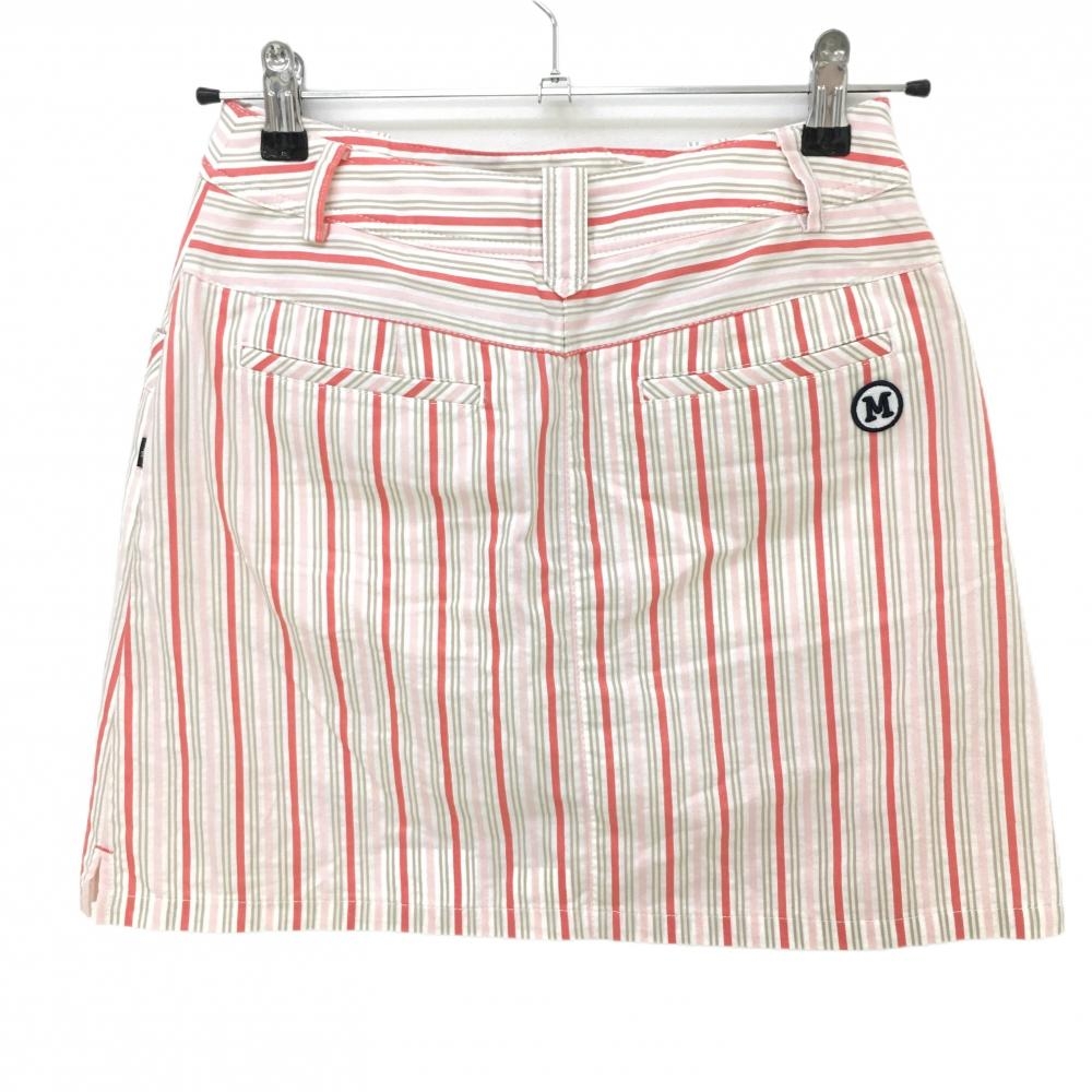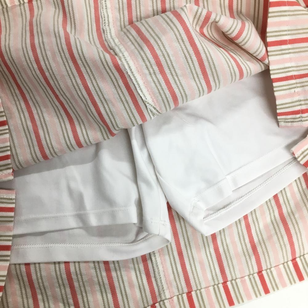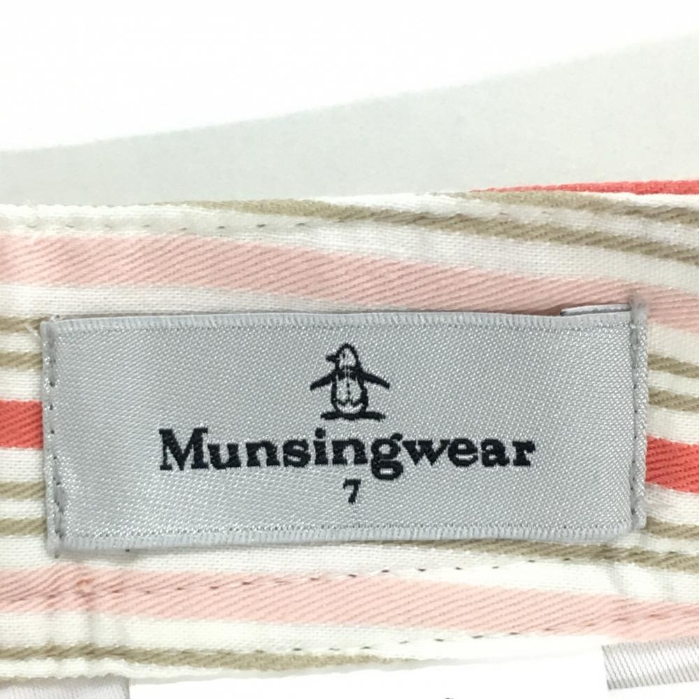【美品】マンシングウェア スカート 白×ピンク ストライプ ストレッチ 内側インナーパンツ レディース 7 ゴルフウェア Munsingwear