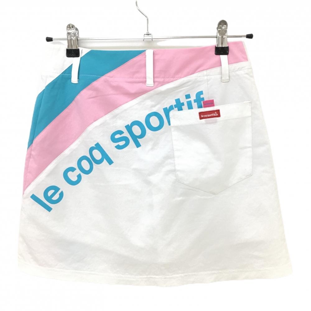 ルコック スカート 白×ライトブルー 後ろロゴプリント 内側インナーパンツ レディース 7 ゴルフウェア le coq sportif