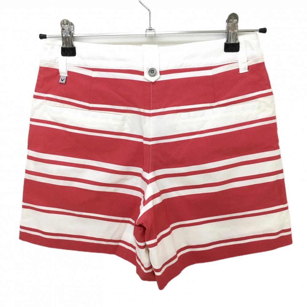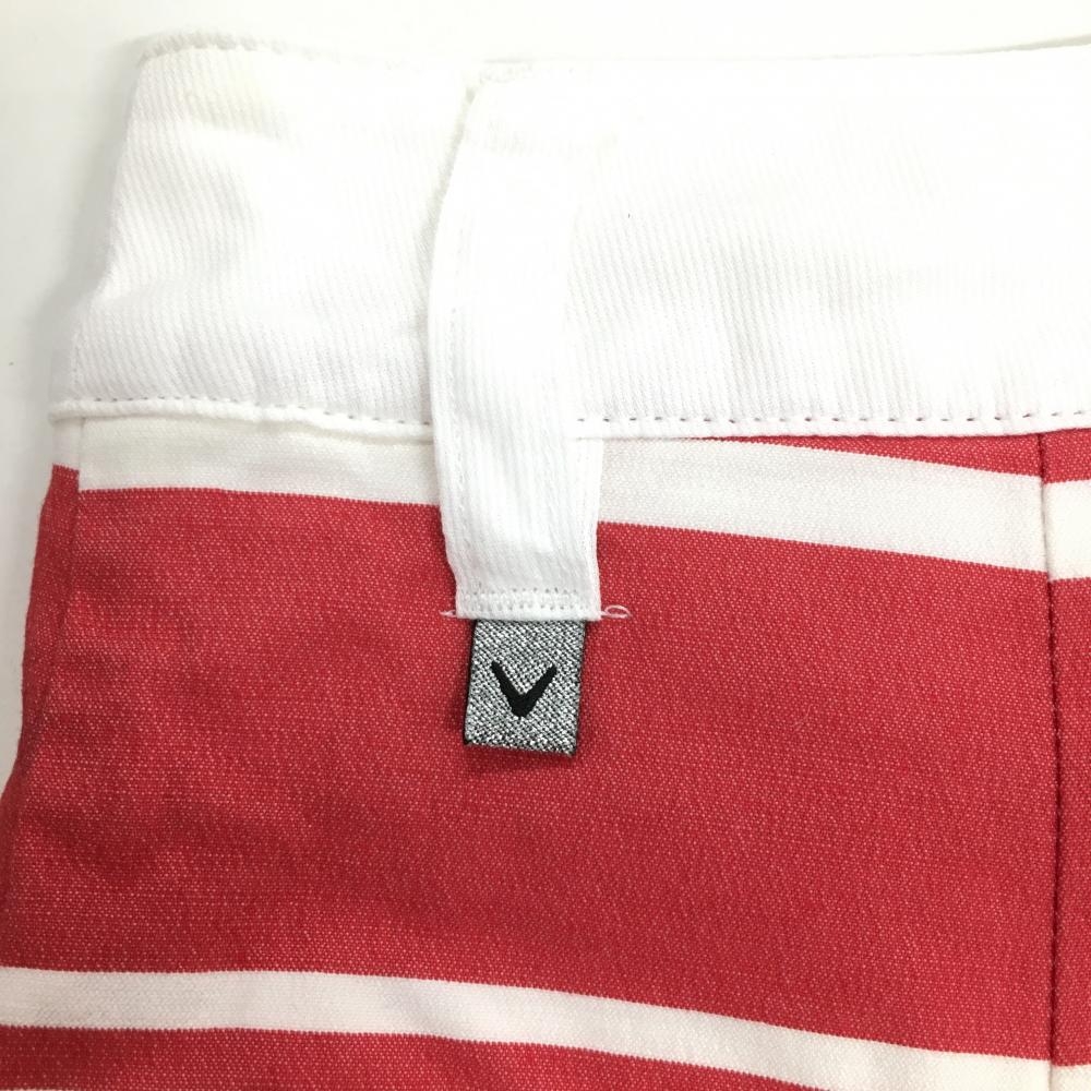 【美品】キャロウェイ ショートパンツ 白×レッド ランダムボーダー ストレッチ レディース SS ゴルフウェア Callaway