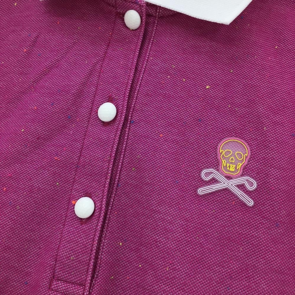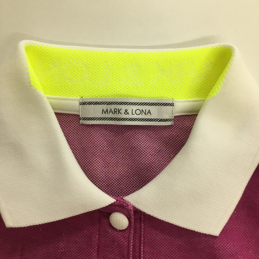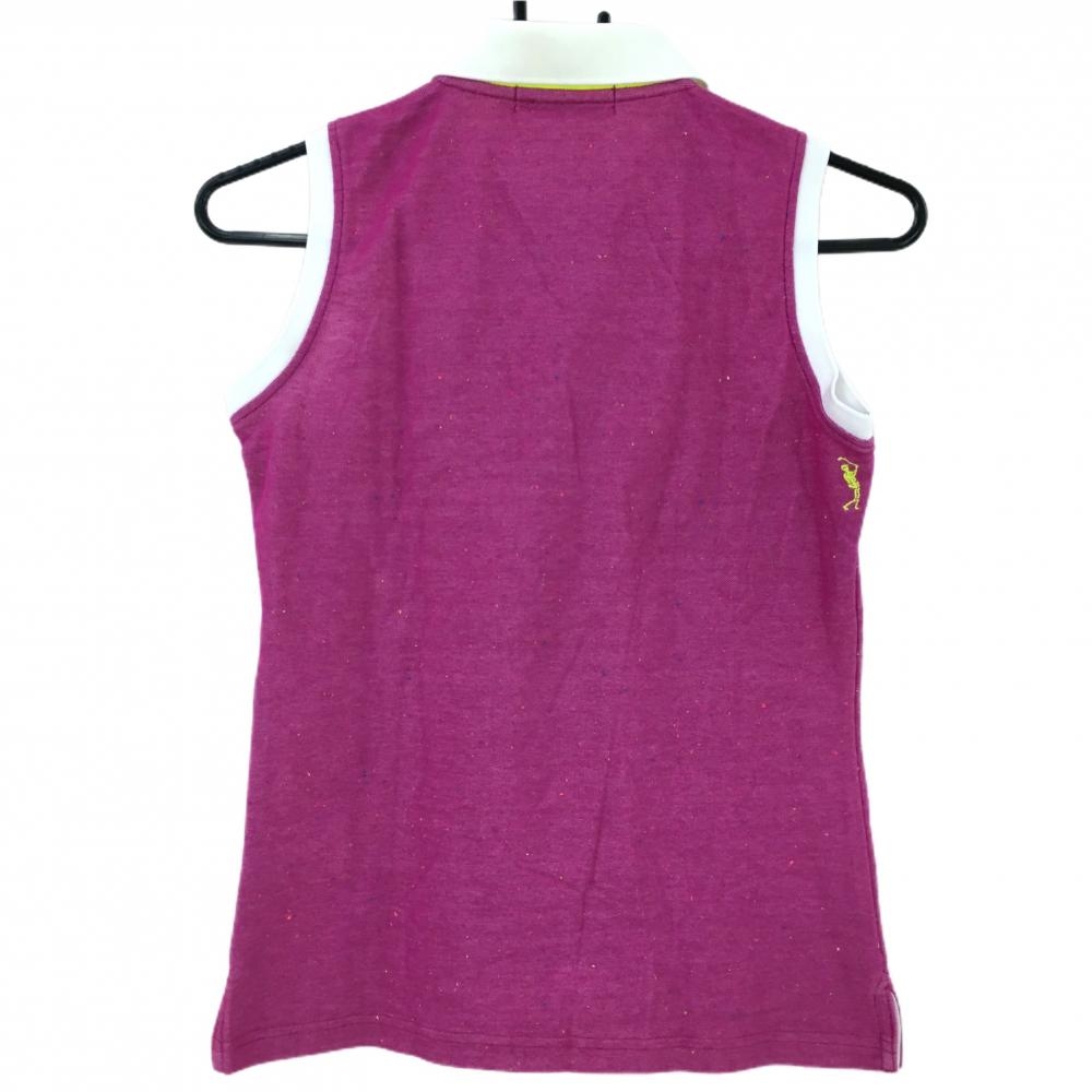 【超美品】マークアンドロナ ノースリーブポロシャツ パープル×白 ネップ スカル レディース S ゴルフウェア MARK&LONA