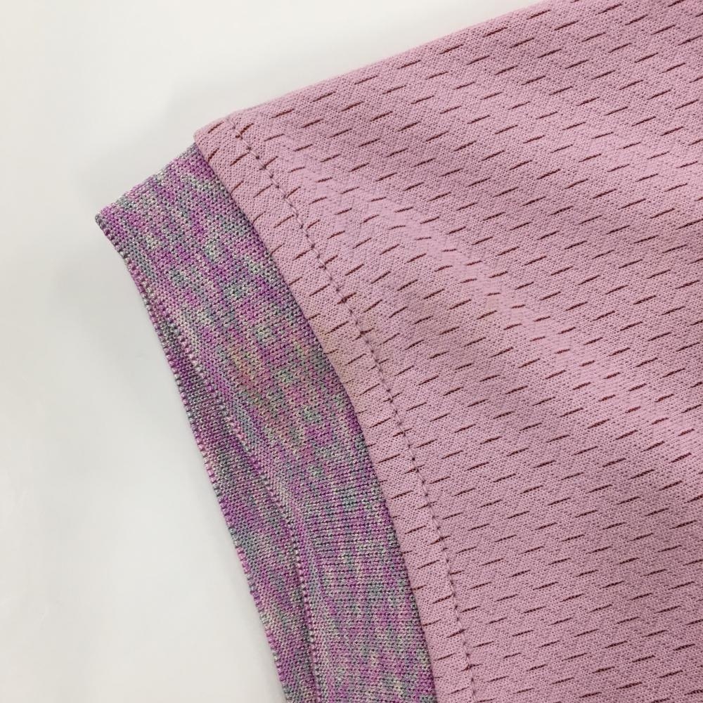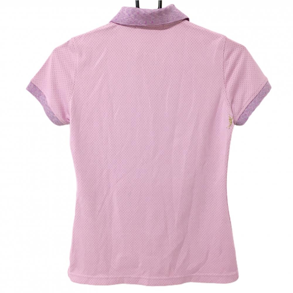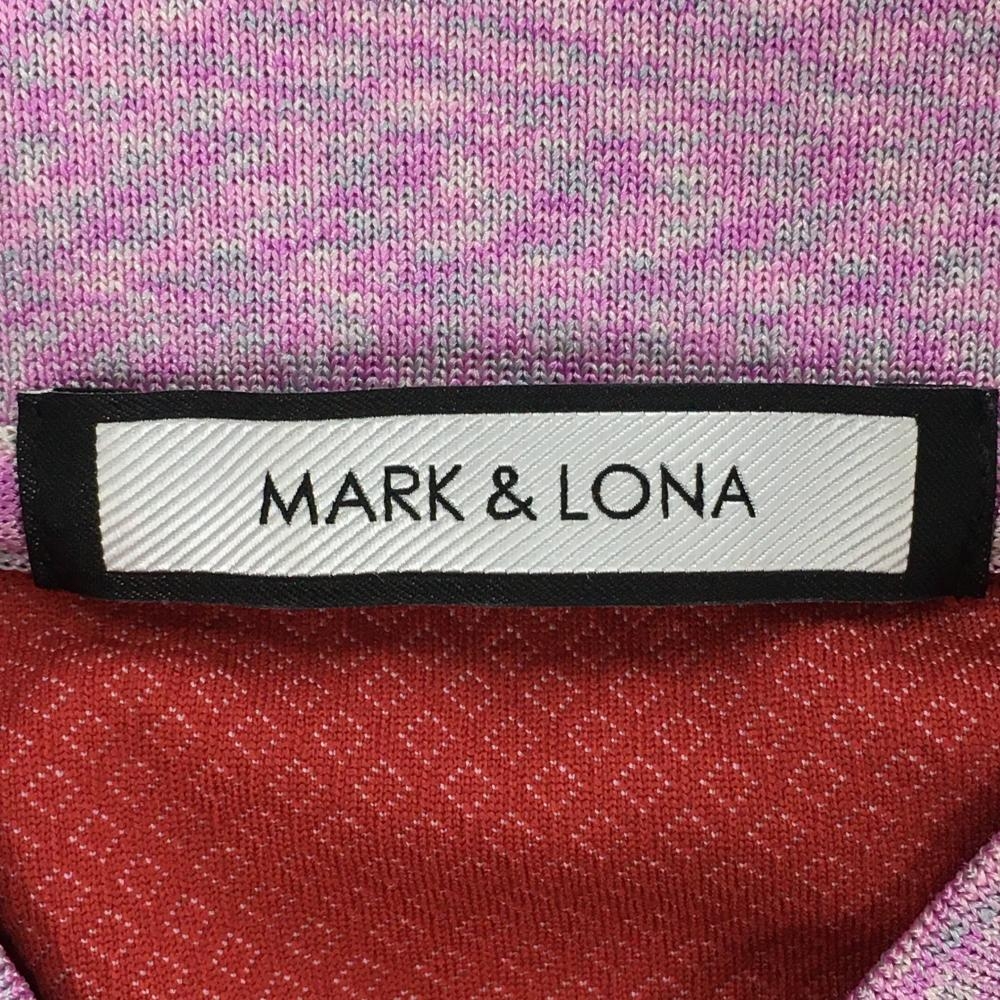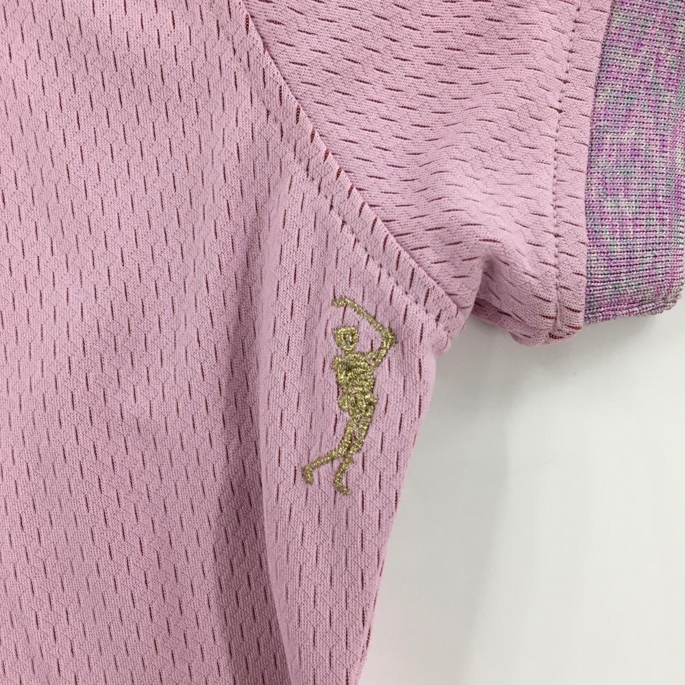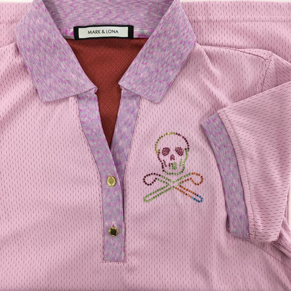 【超美品】マークアンドロナ 半袖ポロシャツ ピンク×杢パープル 織生地 カラフルスカル レディース 36(S) ゴルフウェア MARK&LONA