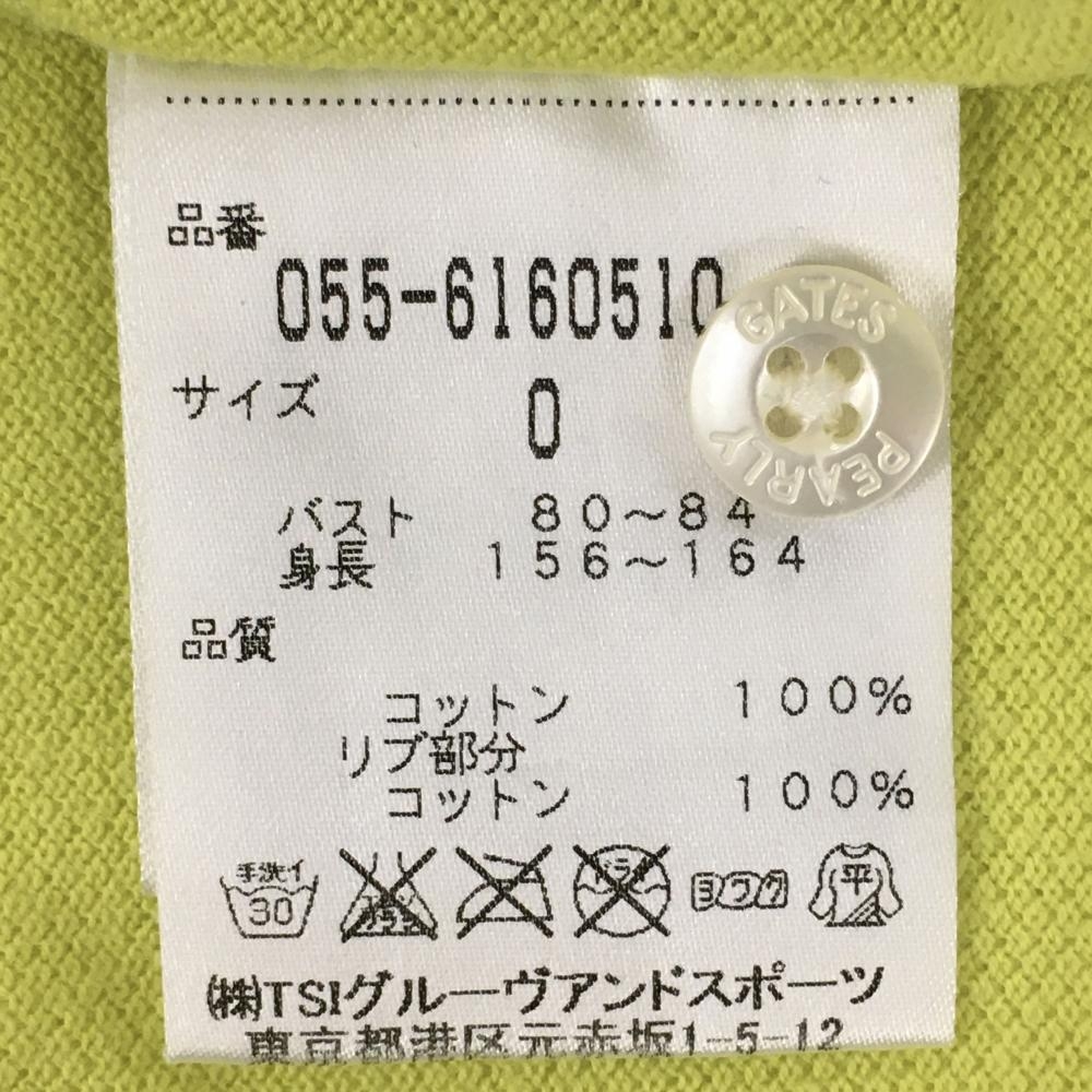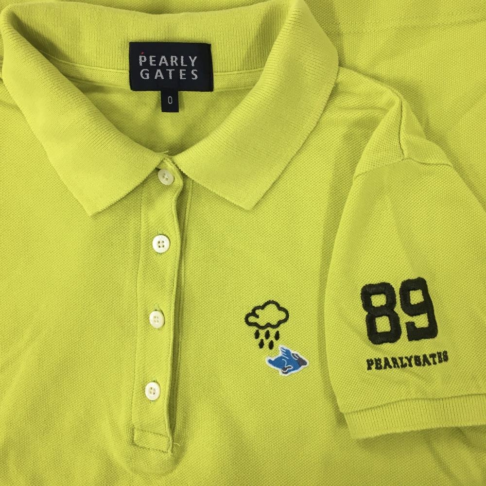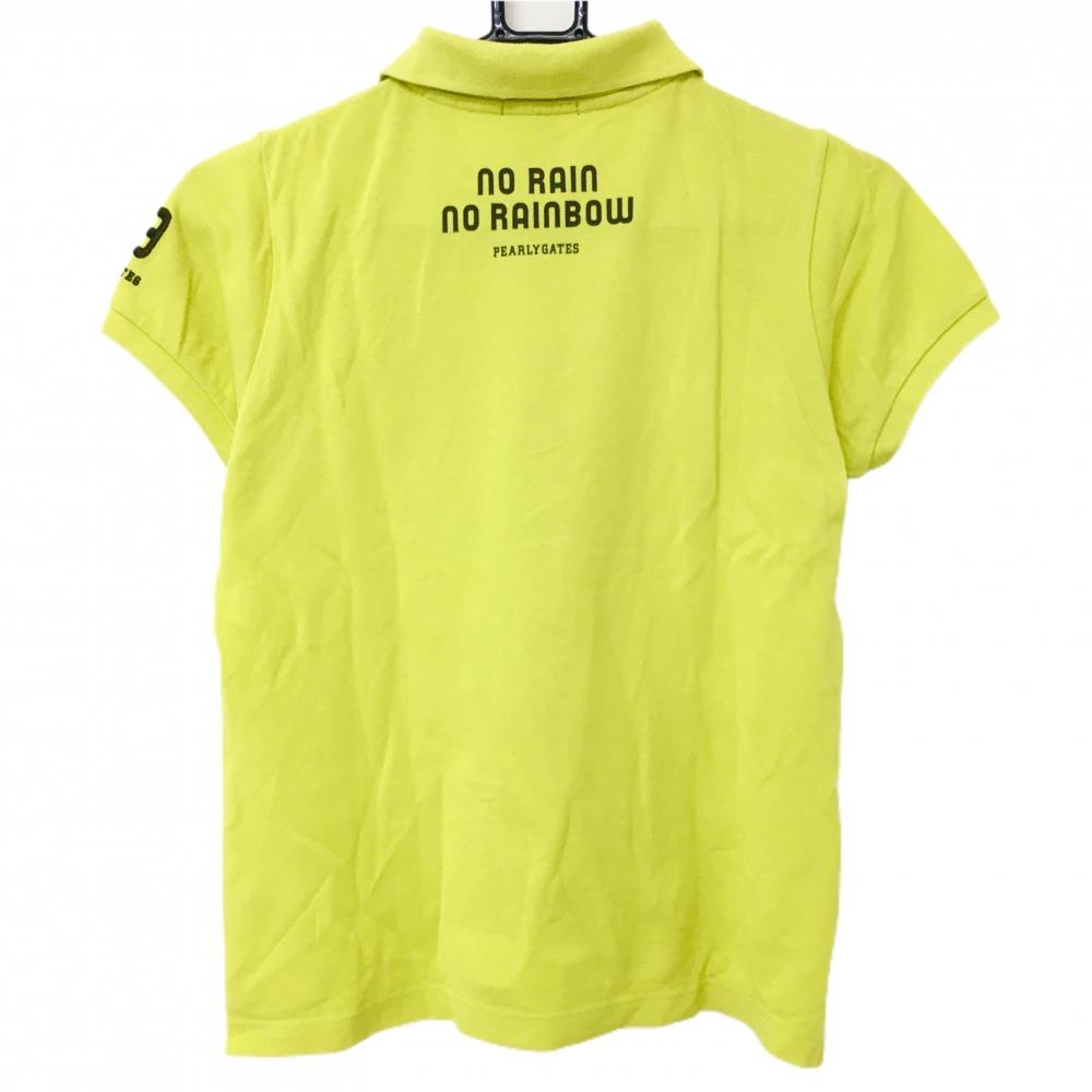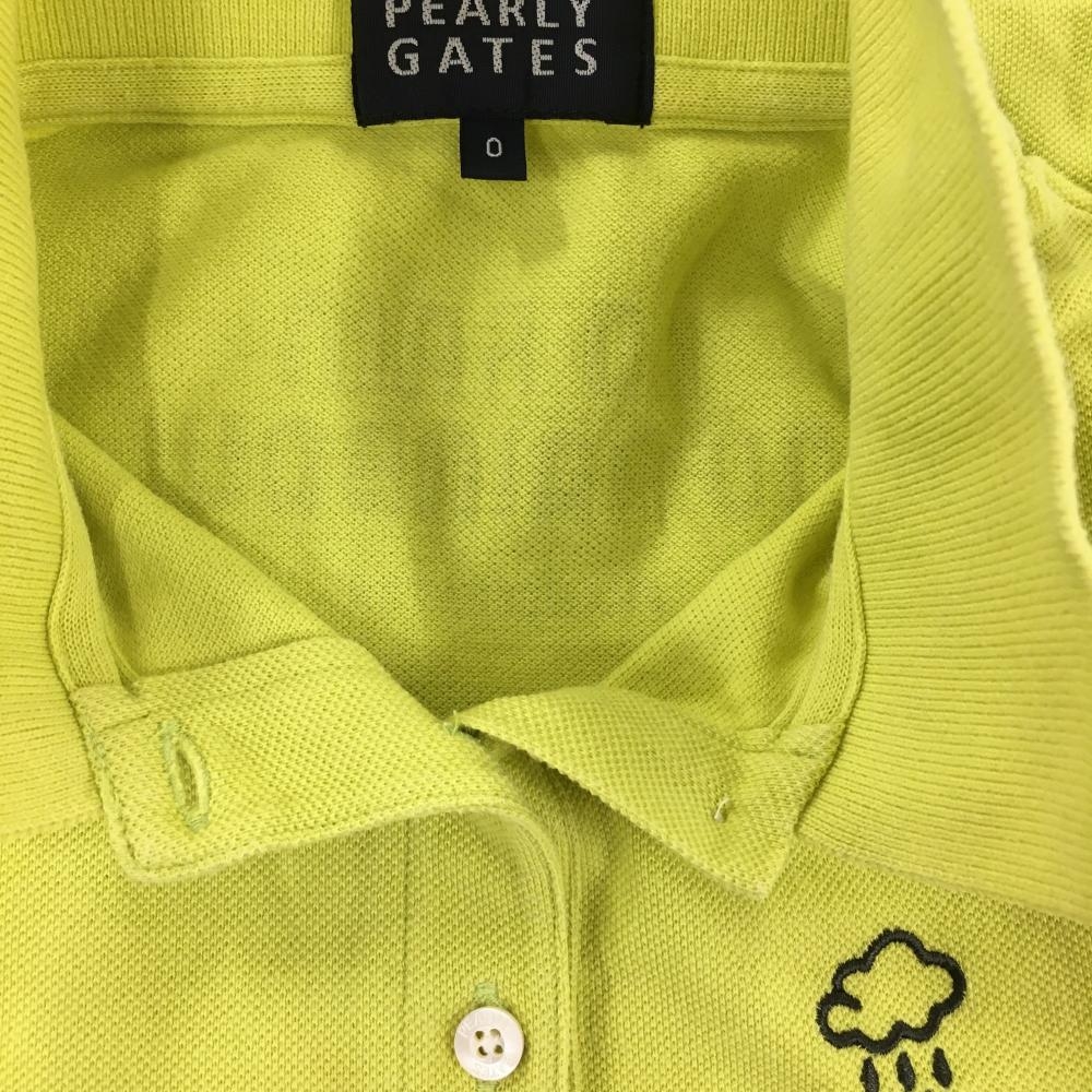 【美品】パーリーゲイツ 半袖ポロシャツ ライムイエロー系 ウェザー刺しゅう コットン100% レディース 0(S) ゴルフウェア PEARLY GATES
