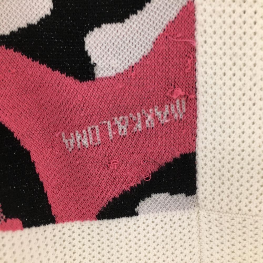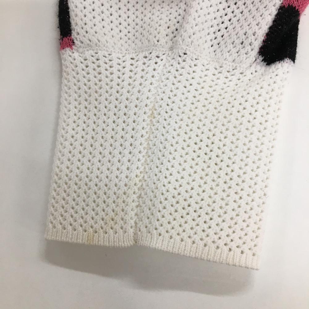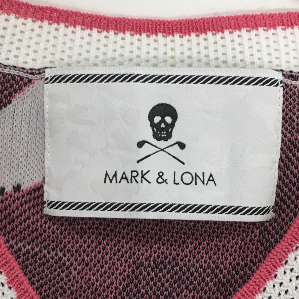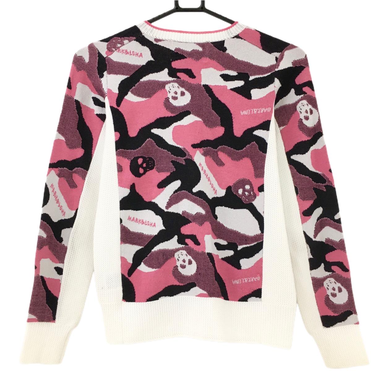マークアンドロナ セーター ピンク×白 迷彩 カモフラ 透かし編み ニット Vネック レディース S ゴルフウェア MARK&LONA
