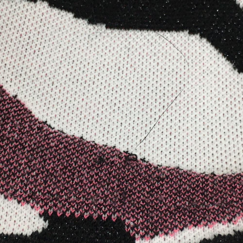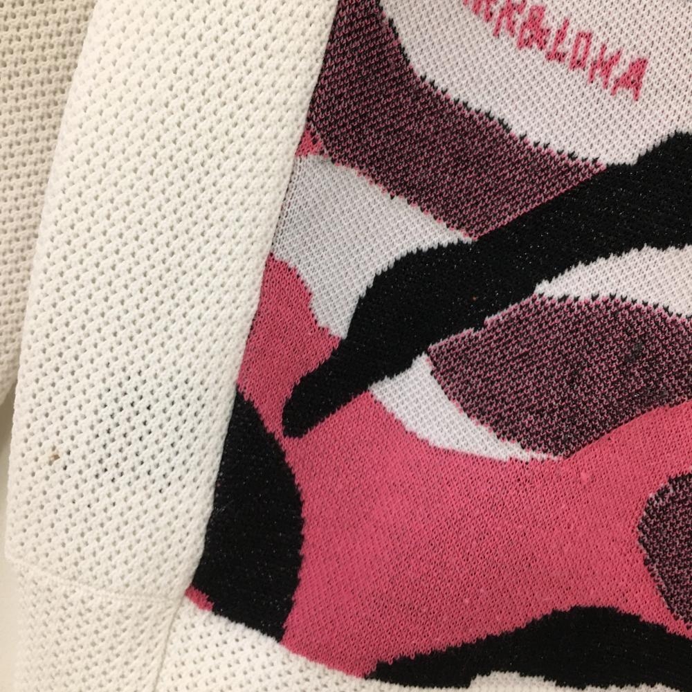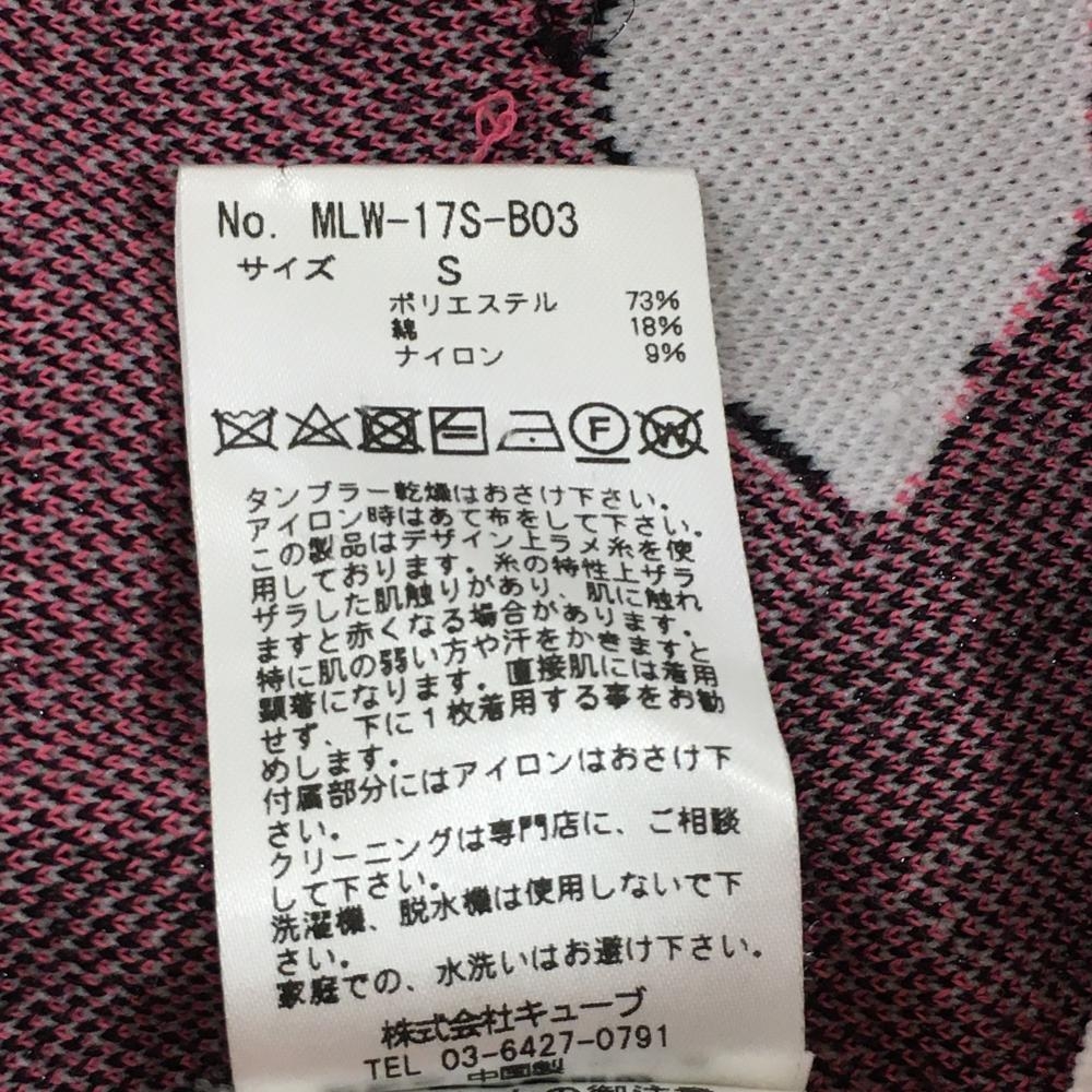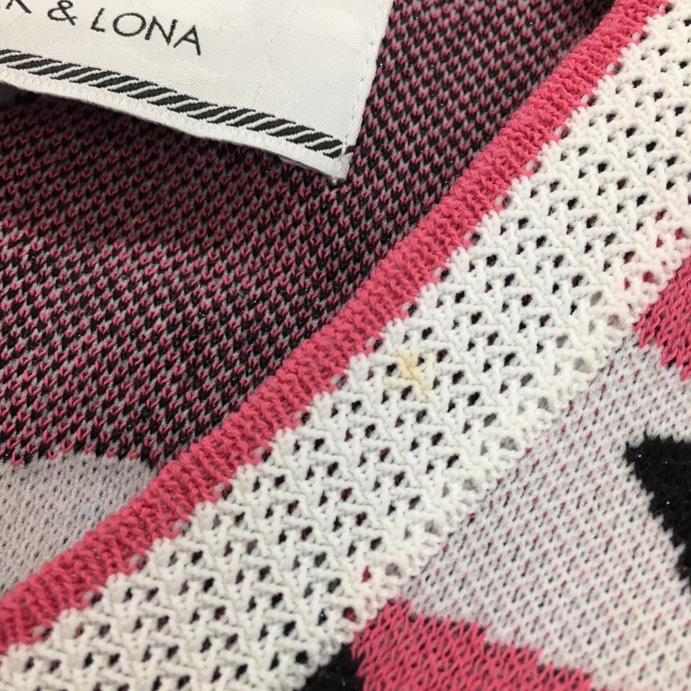マークアンドロナ セーター ピンク×白 迷彩 カモフラ 透かし編み ニット Vネック レディース S ゴルフウェア MARK&LONA