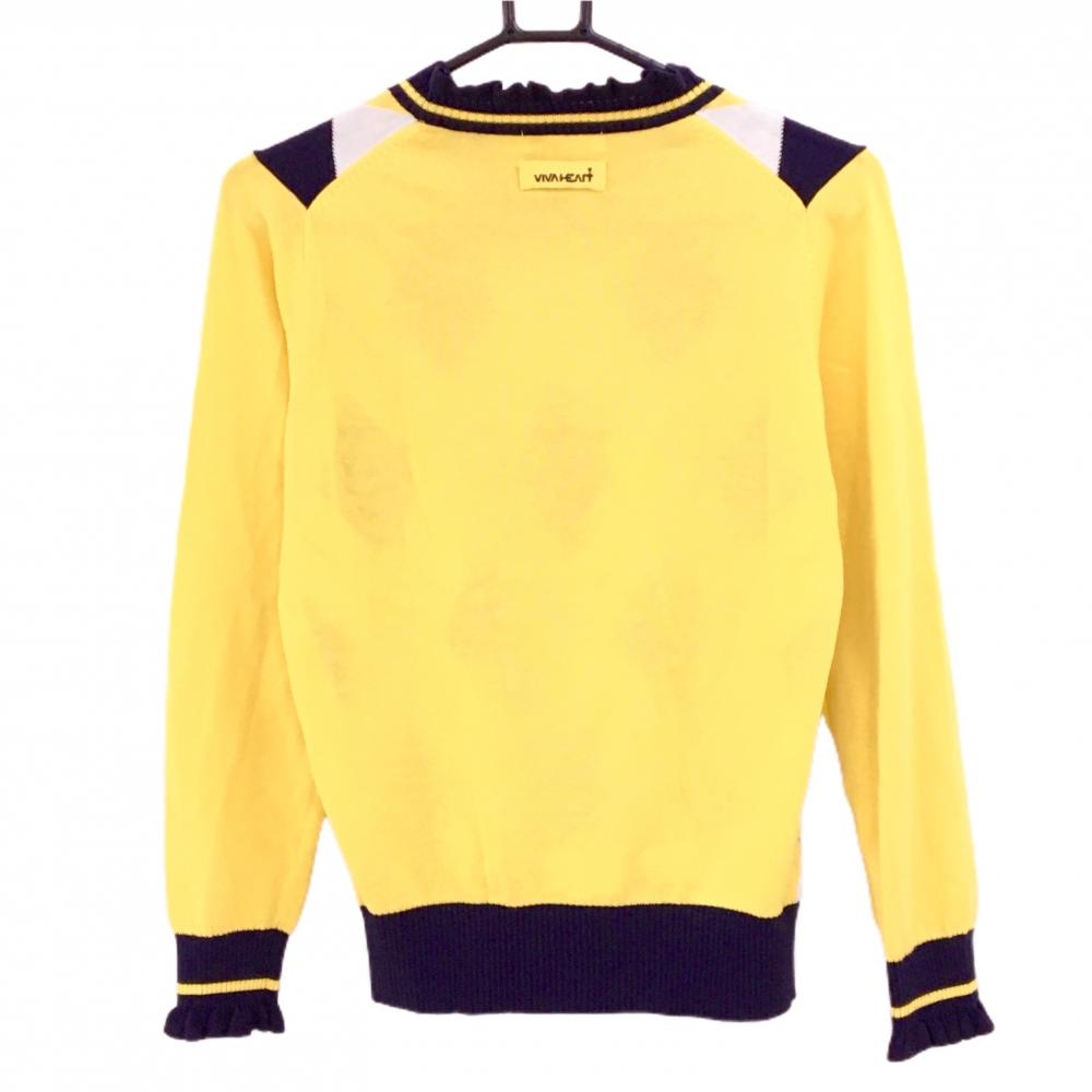 【超美品】ビバハート セーター イエロー×白 前身頃アーガイル ニット アクリル混 レディース 40(M) ゴルフウェア VIVA HEART